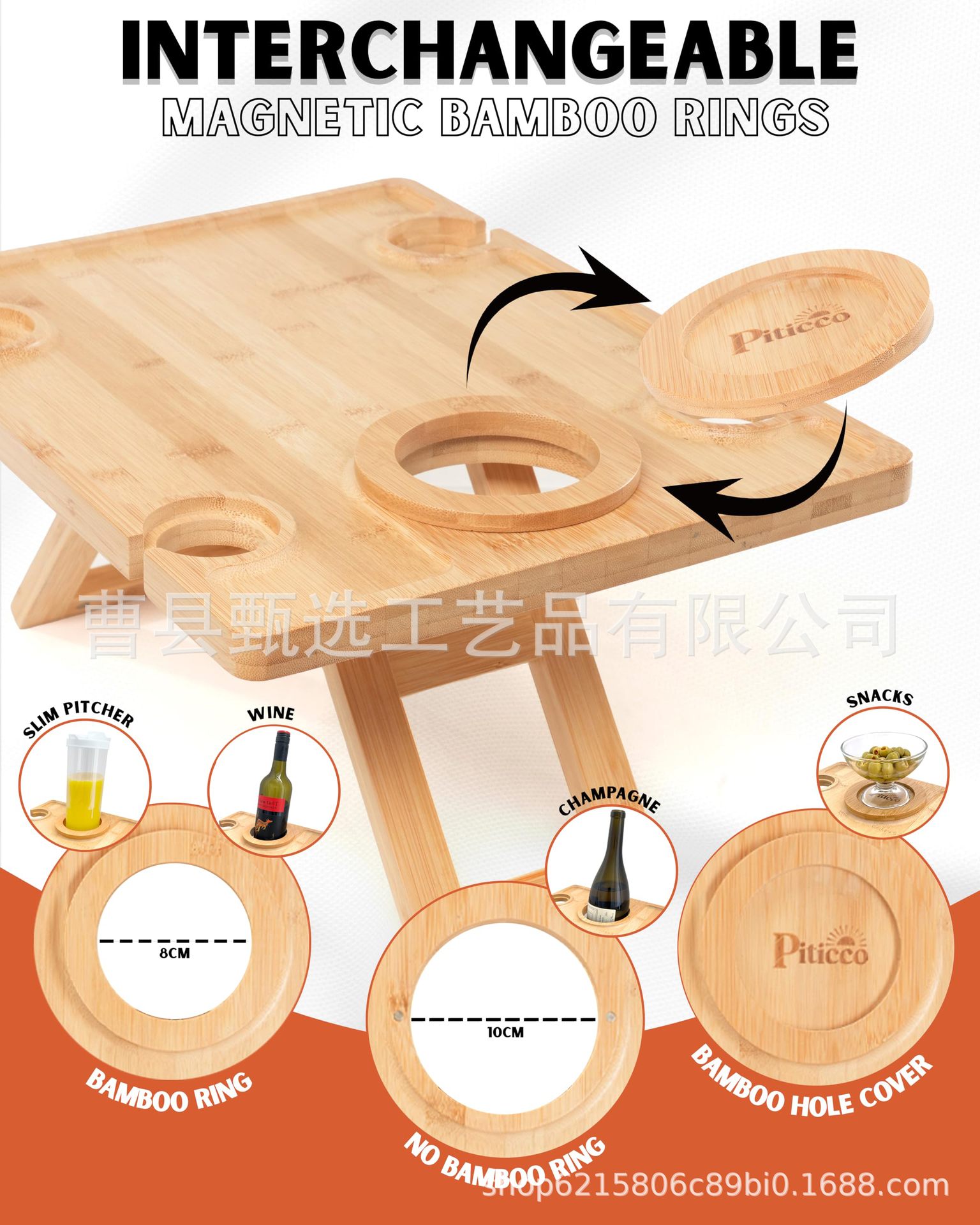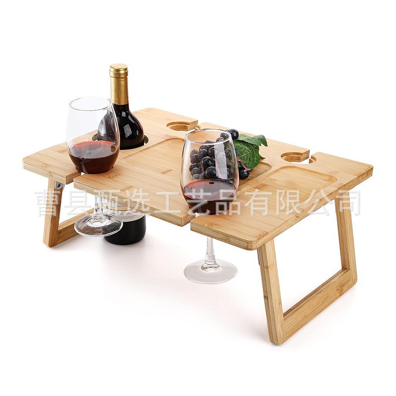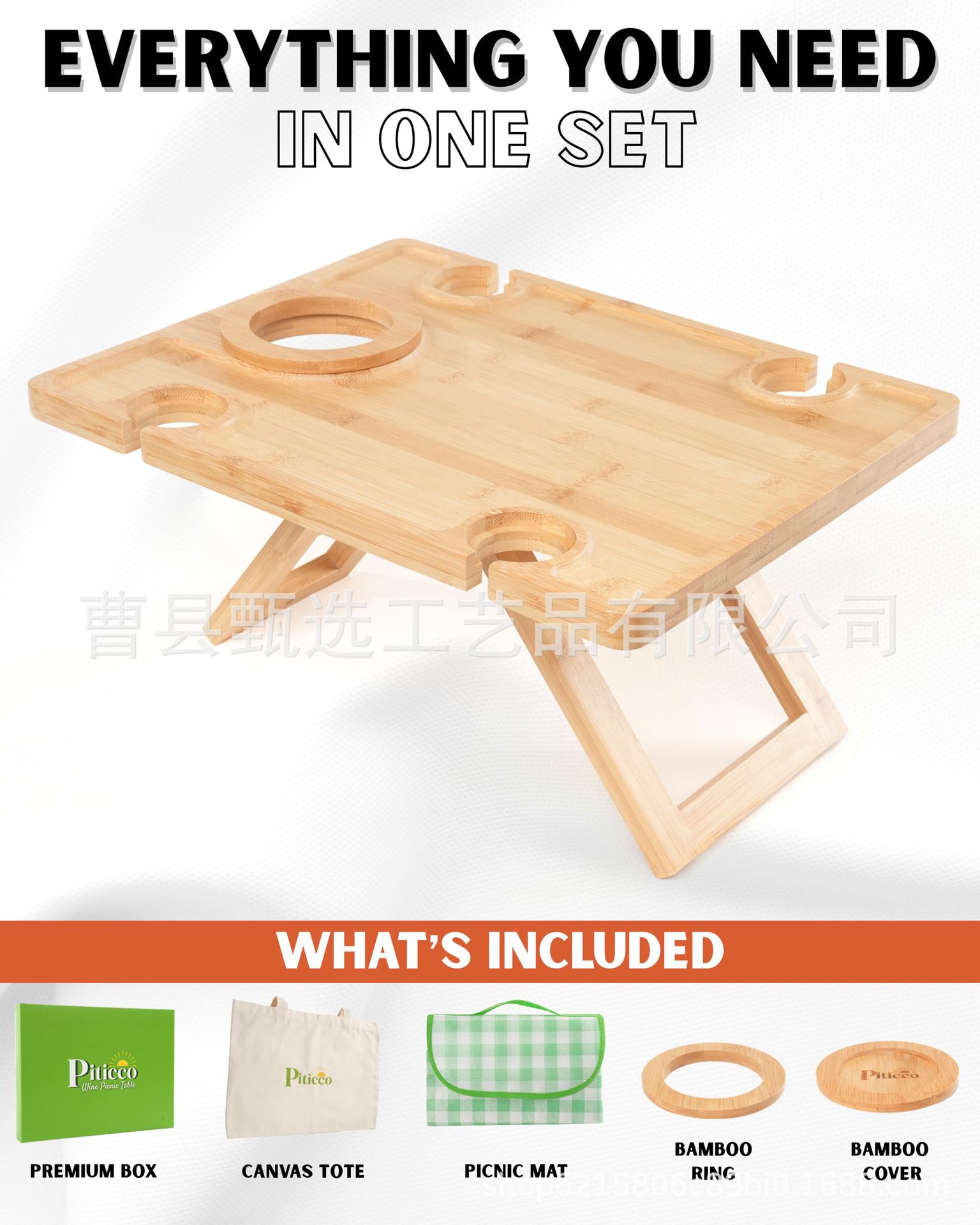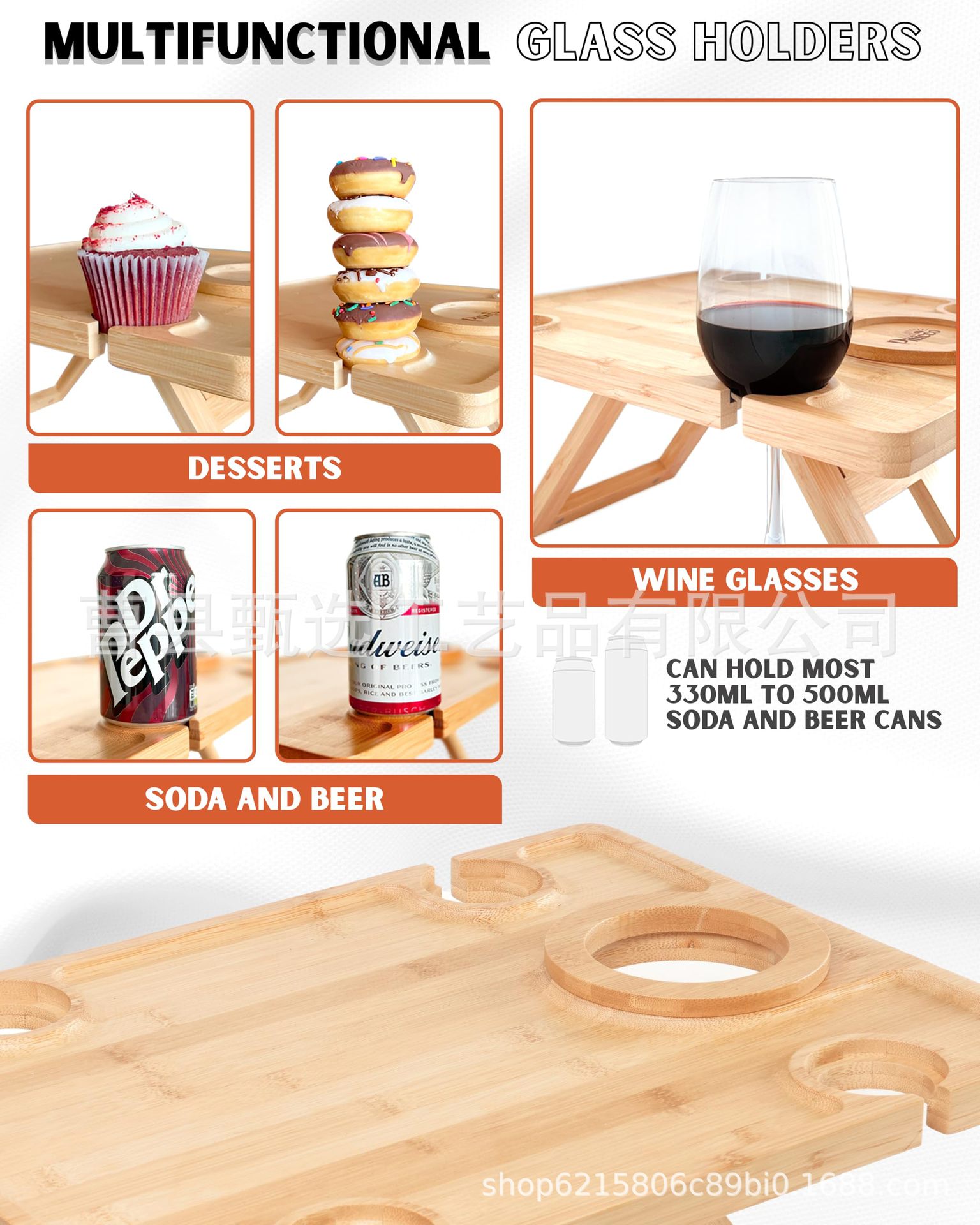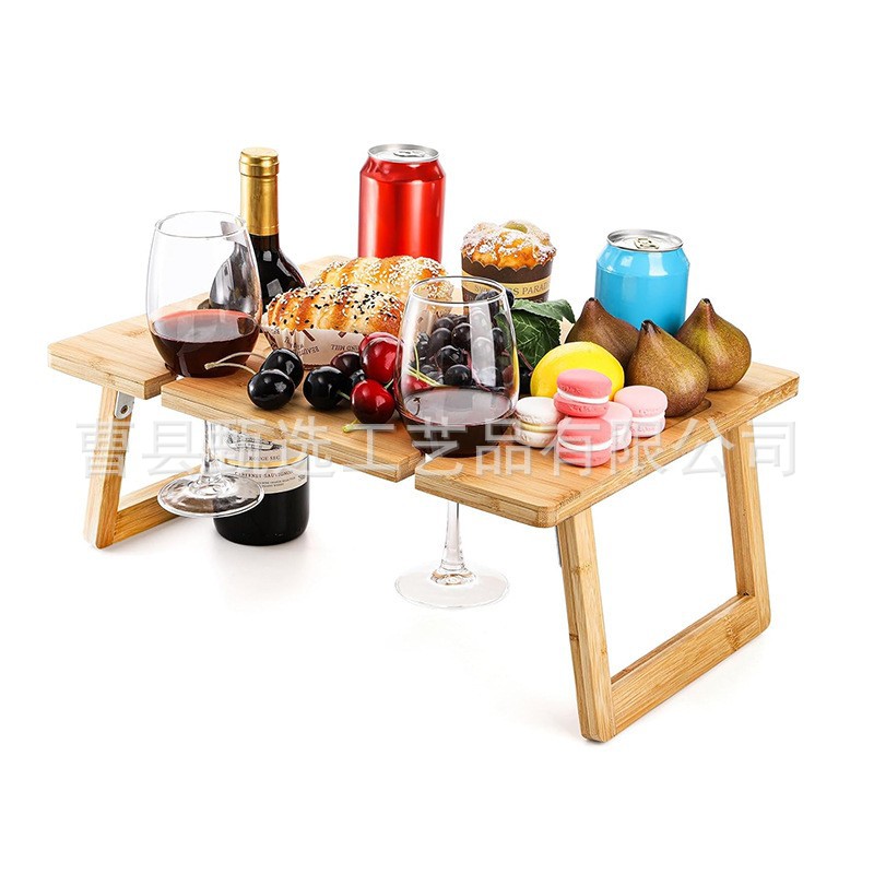 야외 활동을위한 대나무 피크닉 테이블 파티 테이블 와인 랙이있는 다기능 고정 스토리지 테이블 휴대용 캠핑