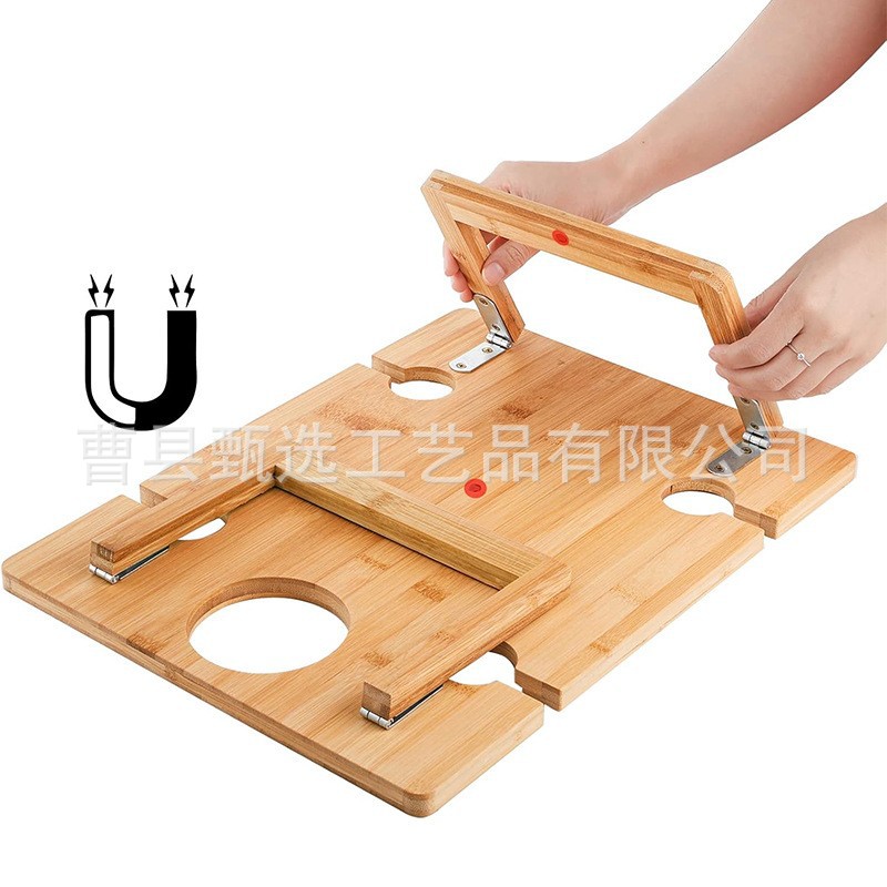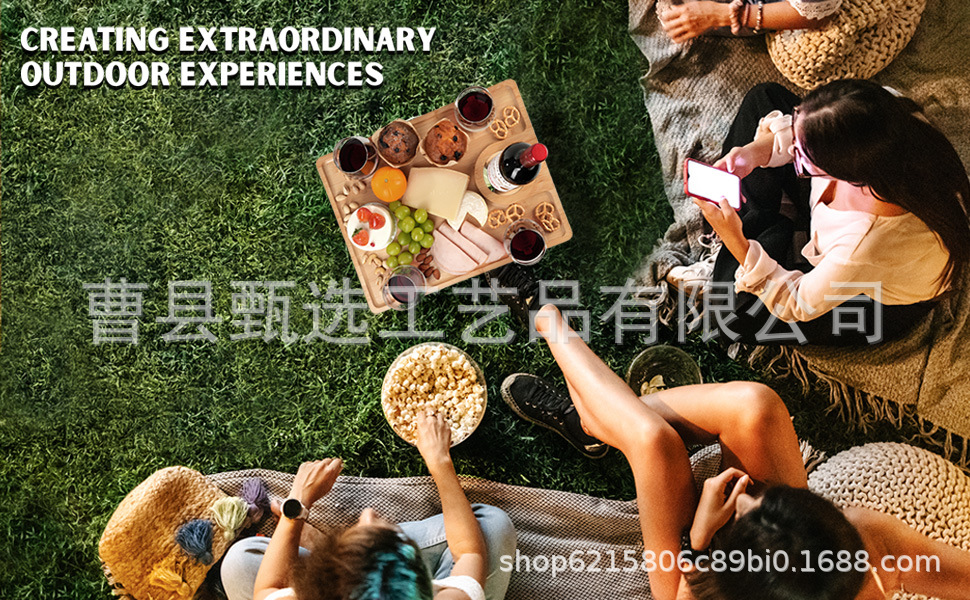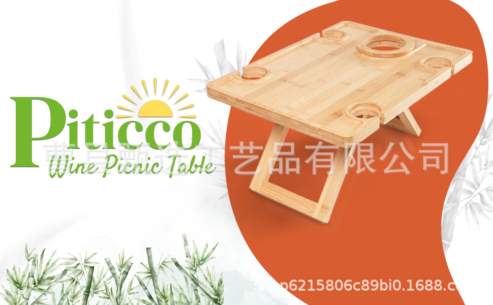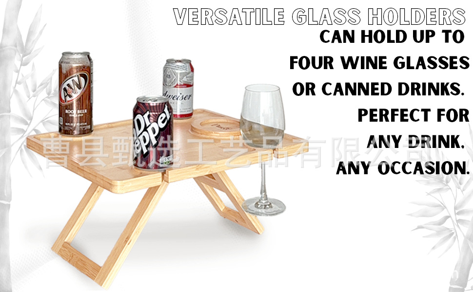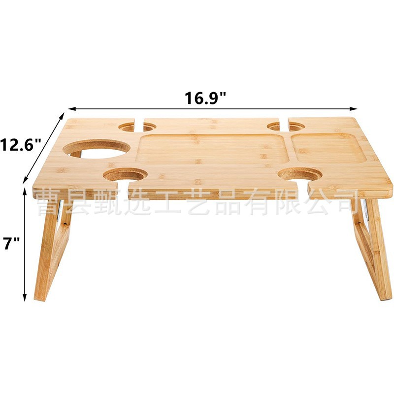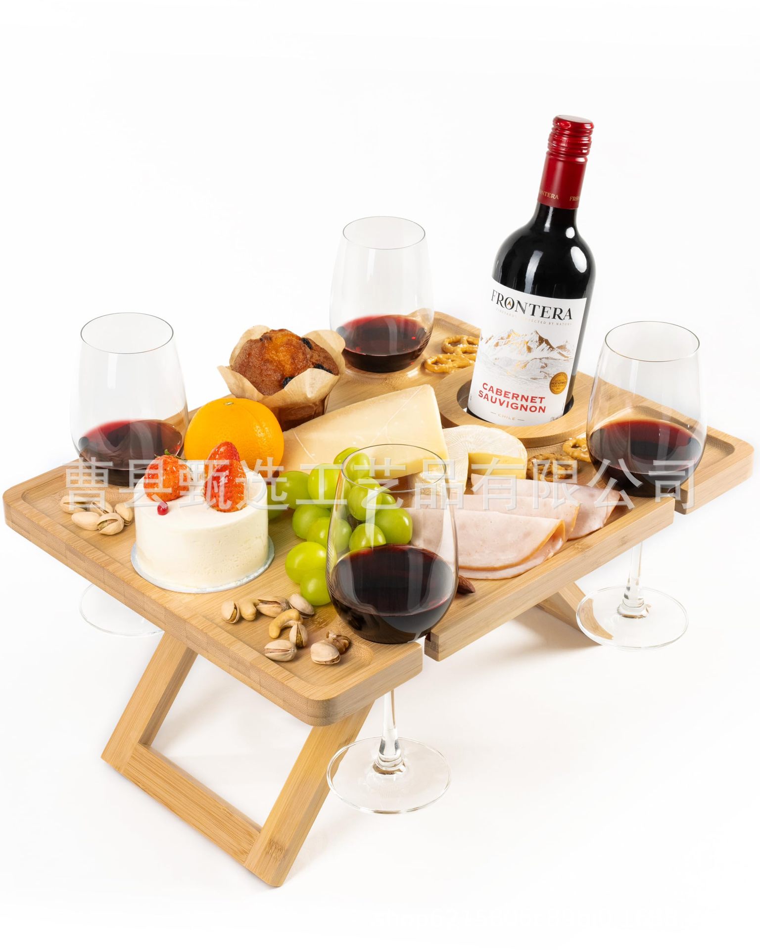 야외 활동을위한 대나무 피크닉 테이블 파티 테이블 와인 랙이있는 다기능 고정 스토리지 테이블 휴대용 캠핑