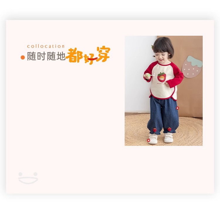 스트로베리 걸즈 시리즈 2026 봄 유아용 배색 편안한 베이스 레이어 셔츠 부드럽고 신축성 있는 피부 친화적인 긴팔 상의 트렌디스토어 가기