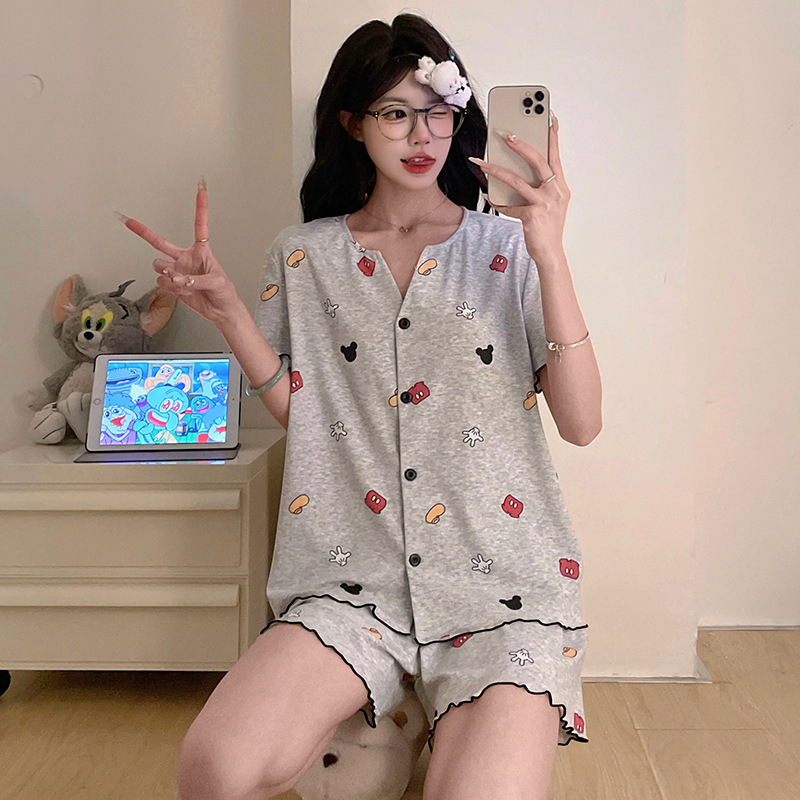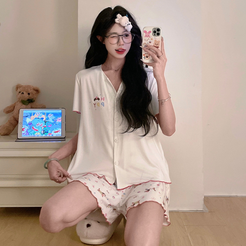 여성용 작은 잠옷 여름 모달 반팔 가디건 큰 소녀 18 세 소녀 시원한 가정복 부모-자식 의류스토어 가기