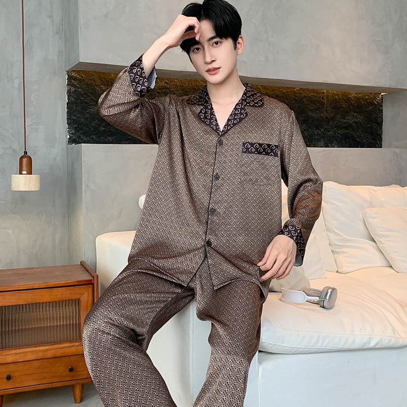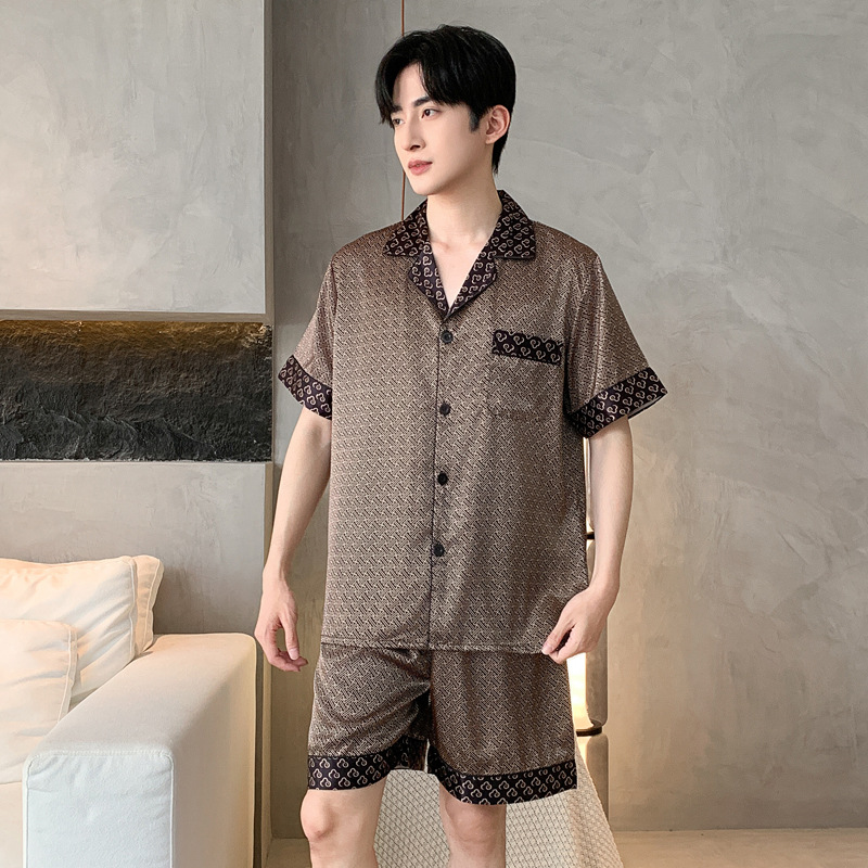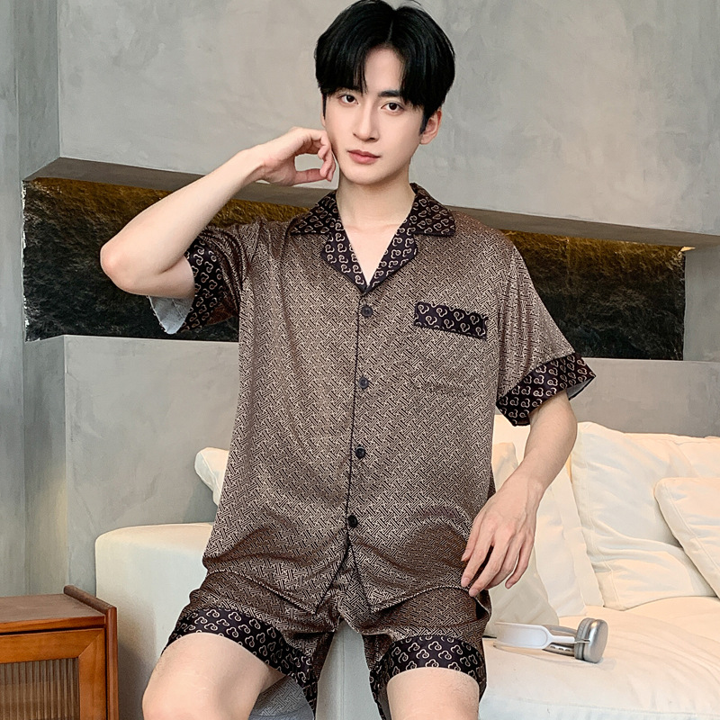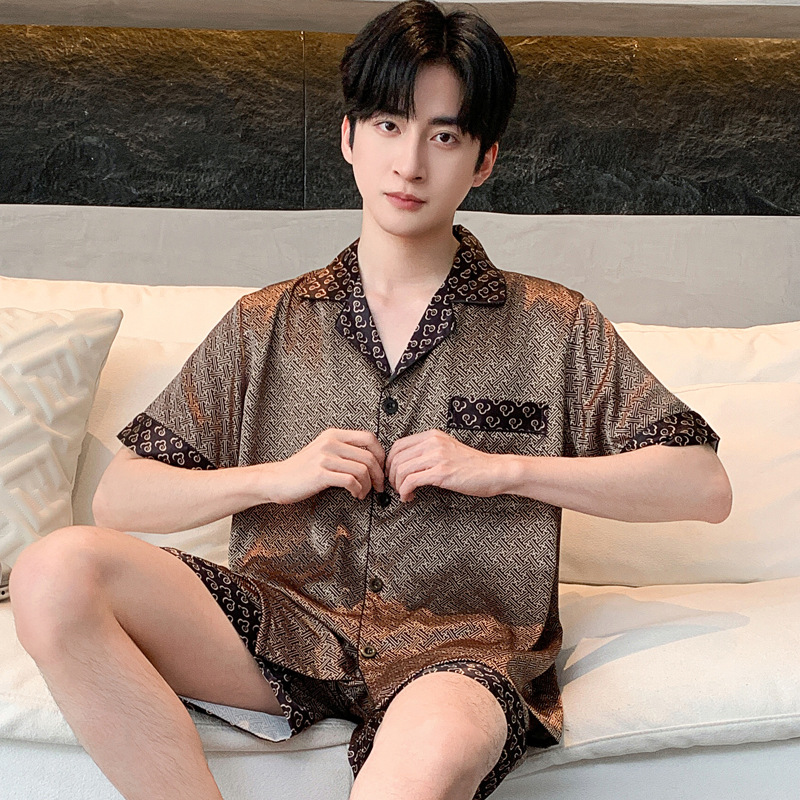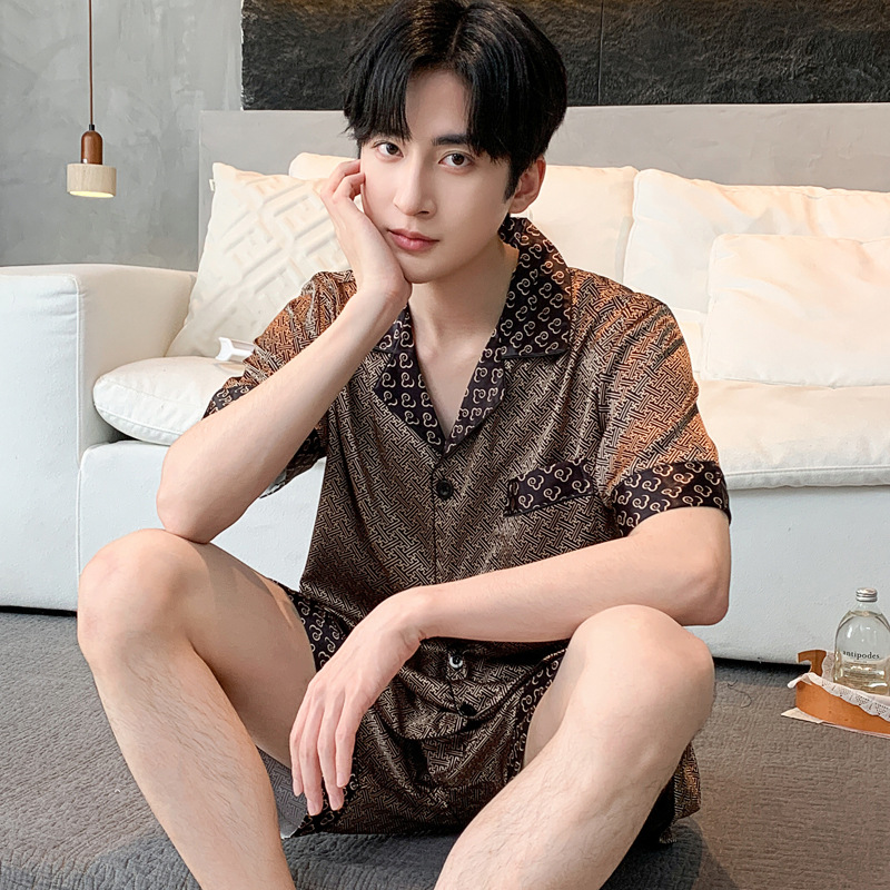새로운 인쇄 된 잠옷 남자의 아이스 실크 여름 짧은 소매 남자의 여름 세트 봄과 가을 남자의 얇은 집 옷