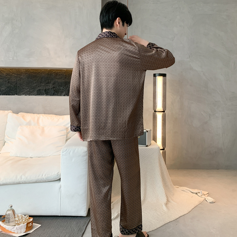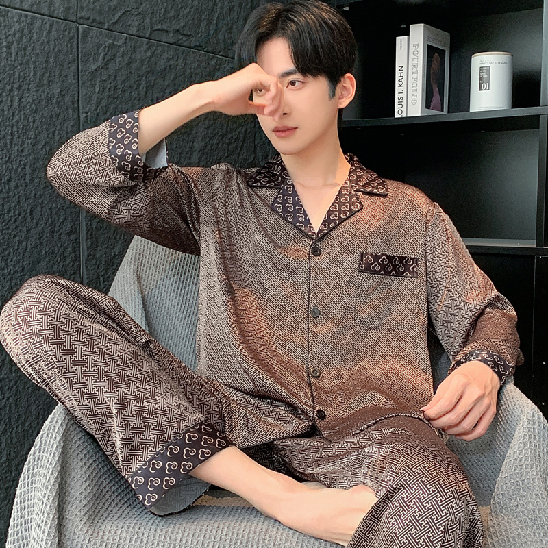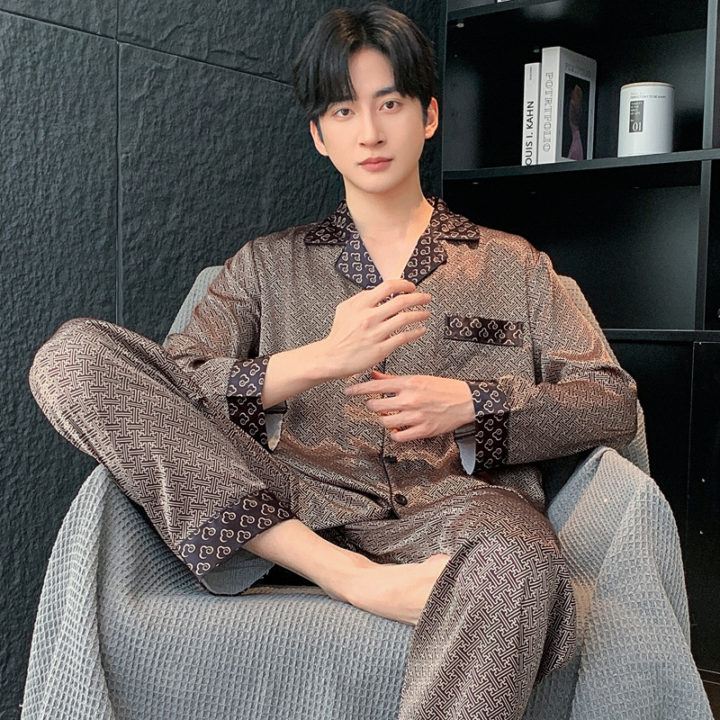 새로운 인쇄 된 잠옷 남자의 아이스 실크 여름 짧은 소매 남자의 여름 세트 봄과 가을 남자의 얇은 집 옷스토어 가기