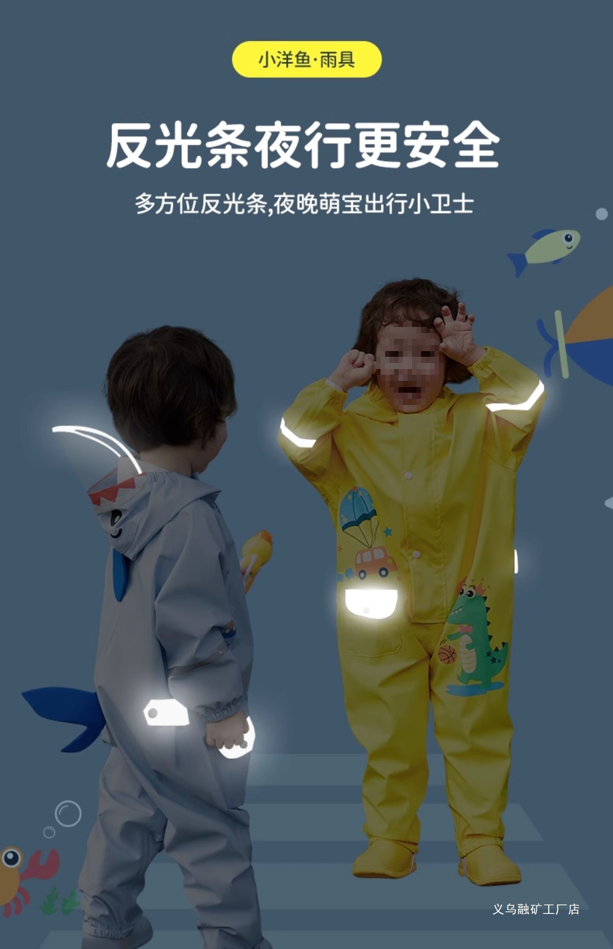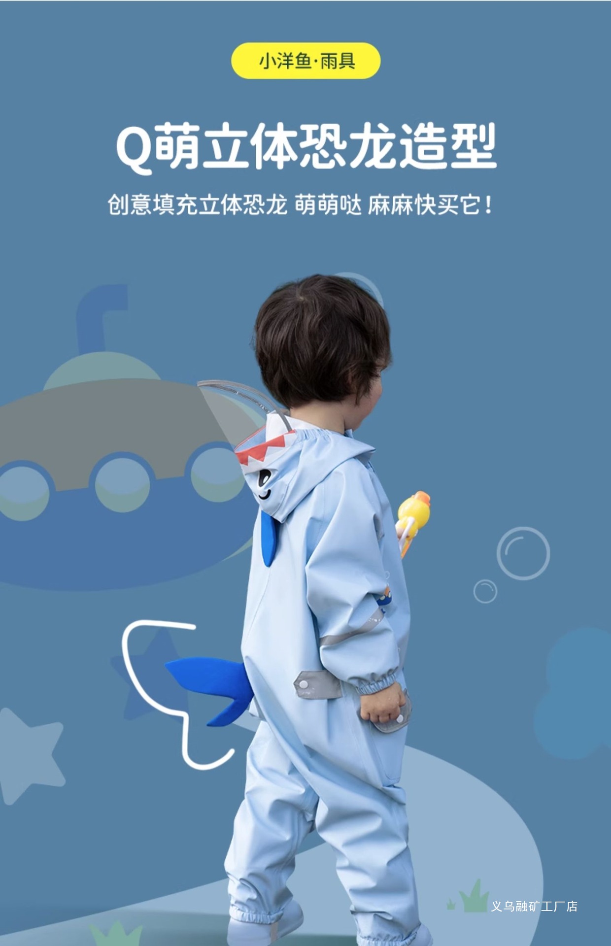 • 오션블루 꼬마상어 원피스 레인코트 [옥스포드 부드러운 원단, 수납백팩 무료]