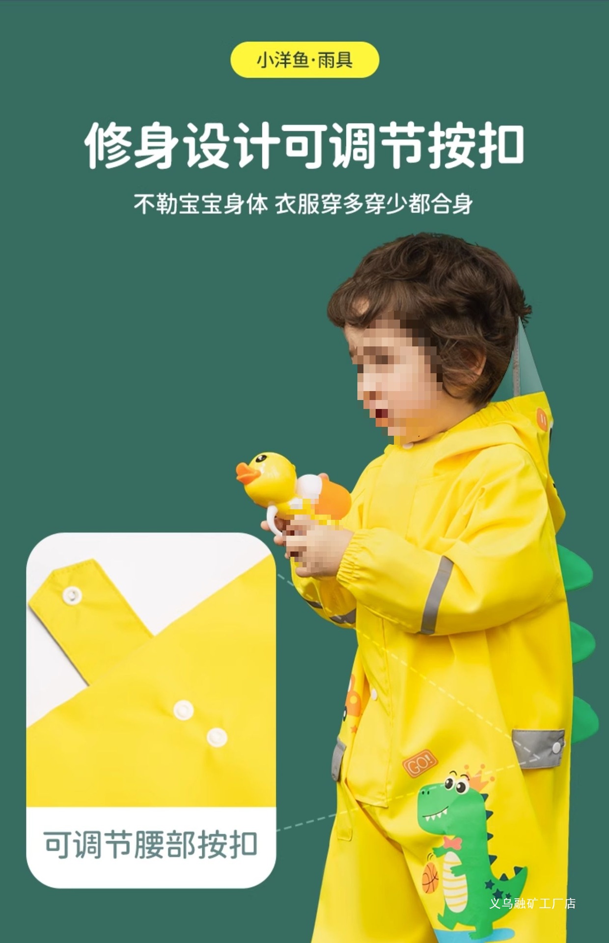 • 생기 넘치는 노란색 공룡 원피스 레인코트 [옥스포드 부드러운 원단, 무료 수납 백팩]