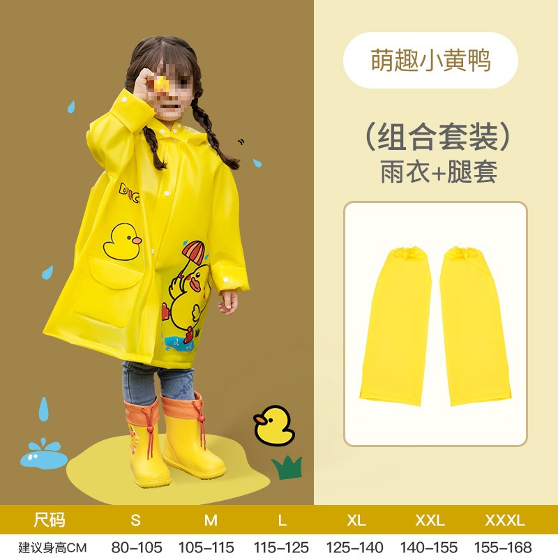 • 귀여운 작은 노란 오리 [긴 비옷 + 다리 커버] EVA 두꺼운 16 실크 학교 가방 비트