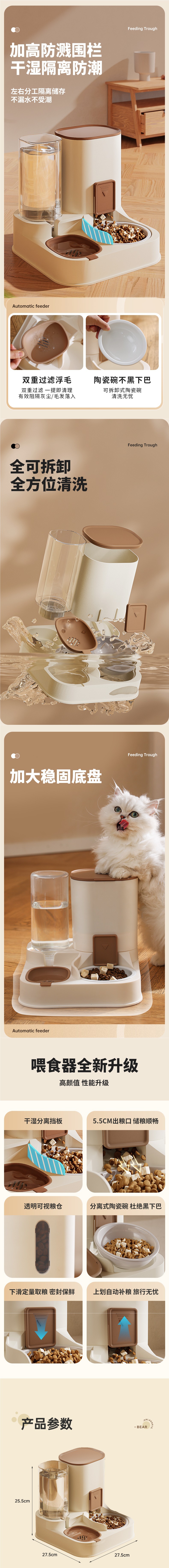 • 업그레이드된 카키브라운 - 세라믹 그릇 + 필터엘리먼트 [검은 턱 방지/용량 증가로 업그레이드/곡물 정량 조절 가능]