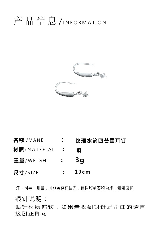와이어 드로잉 텍스처 워터 드롭 4 본 스타 귀걸이 틈새 디자인 하이 엔드 라이트 럭셔리 귀걸이 기질 귀걸이 독특한 귀걸이스토어 가기