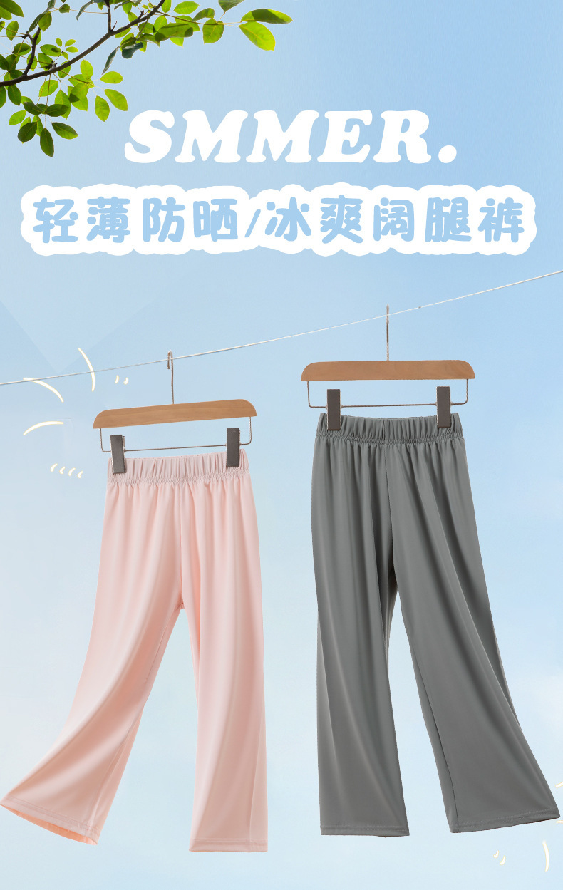 어린이 얼음 실크 모기 방지 바지 여름 얇은 통기성 아기 소녀의 새로운 캐주얼 바지 소년의 넓은 다리 바지스토어 가기