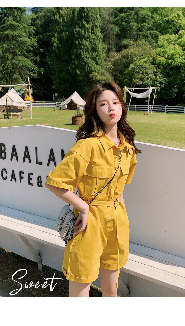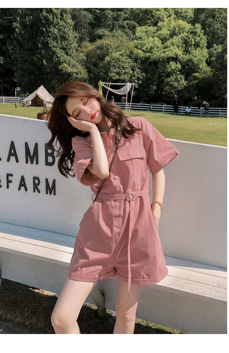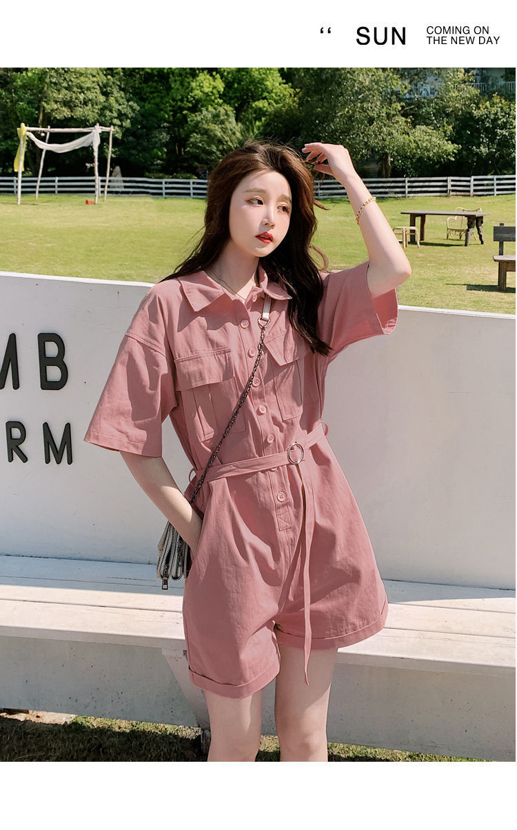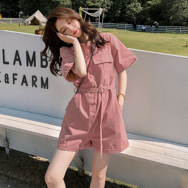 작업복 여자 여름 얇은 2024 새로운 사이버 연예인 점프 수트 한국 스타일 느슨한 반바지 작은 남자를위한 세트스토어 가기