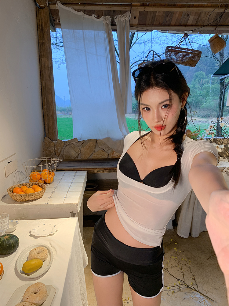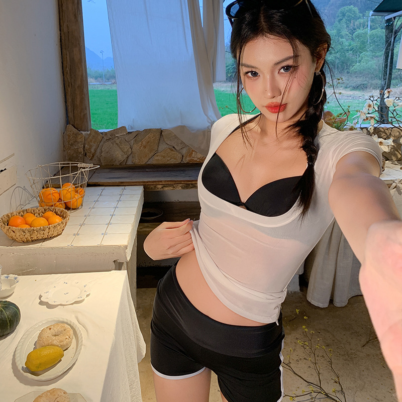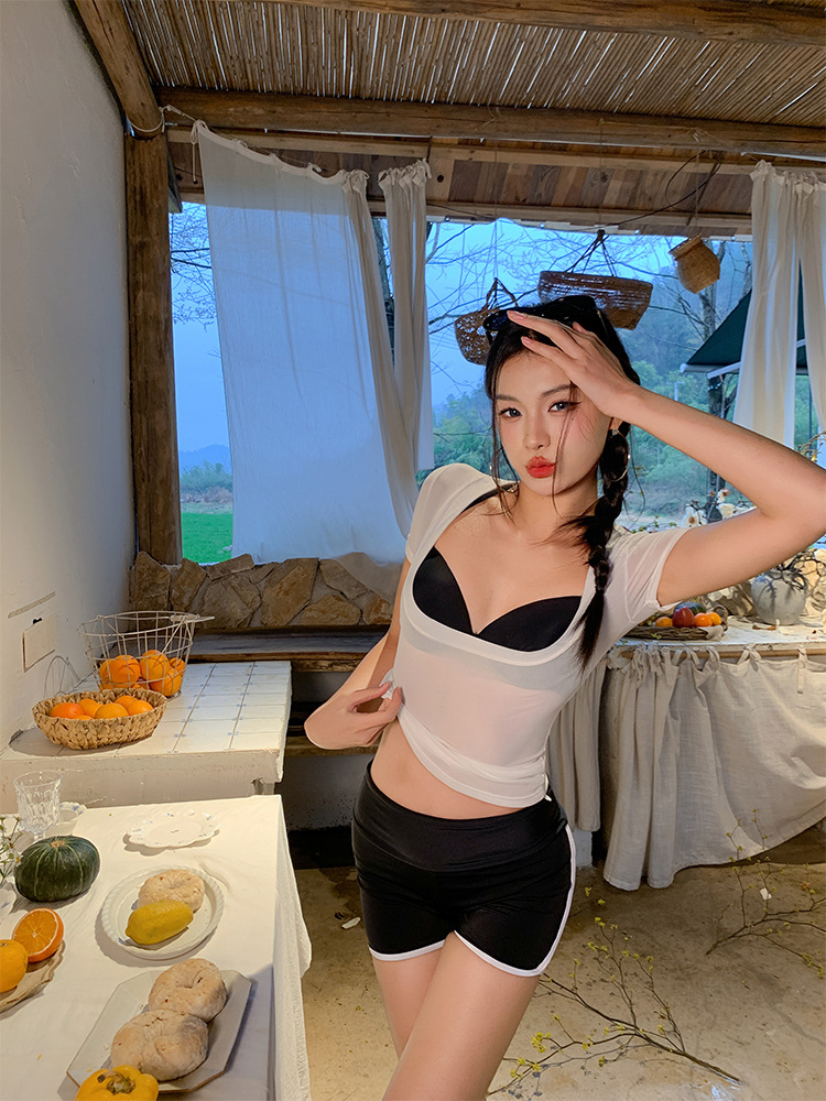 Pure Desire Xiaoxiangfeng 하이 엔드 캐주얼 휴가 온천 반팔 비키니 BIKINI 여성용 스플릿 수영복