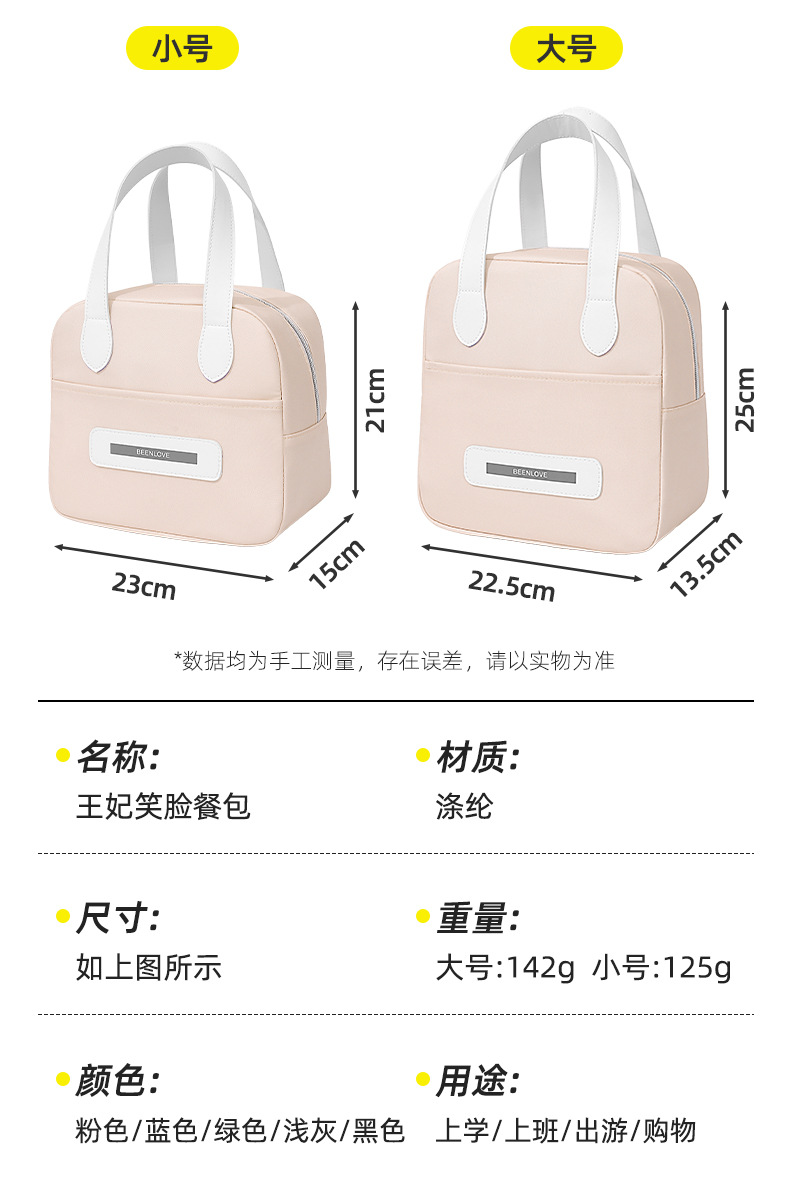 새로운 스마일 스퀘어 식사 가방 학생 식사 가방 야외 아이스 백 휴대용 절연 가방 사무원 런치 백