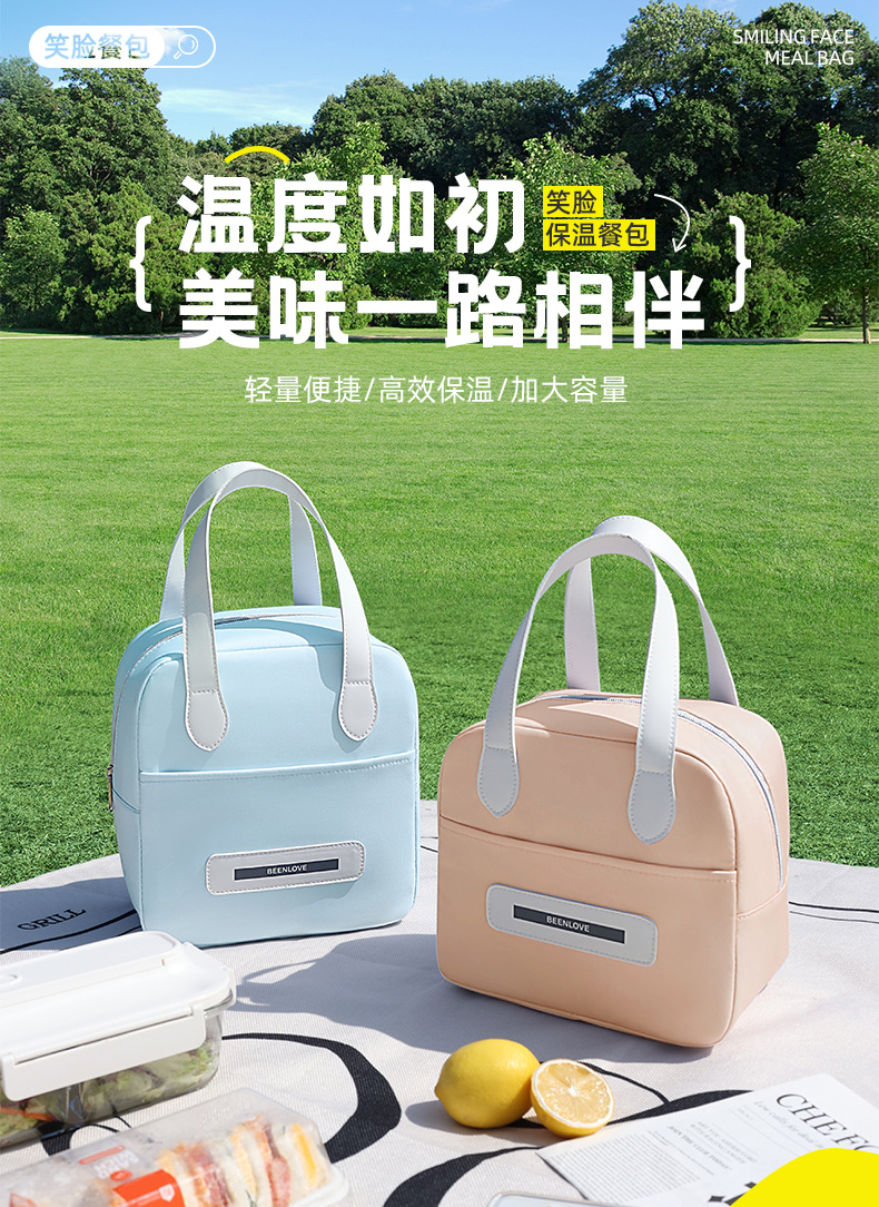 새로운 스마일 스퀘어 식사 가방 학생 식사 가방 야외 아이스 백 휴대용 절연 가방 사무원 런치 백스토어 가기