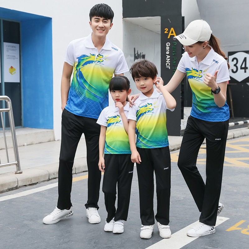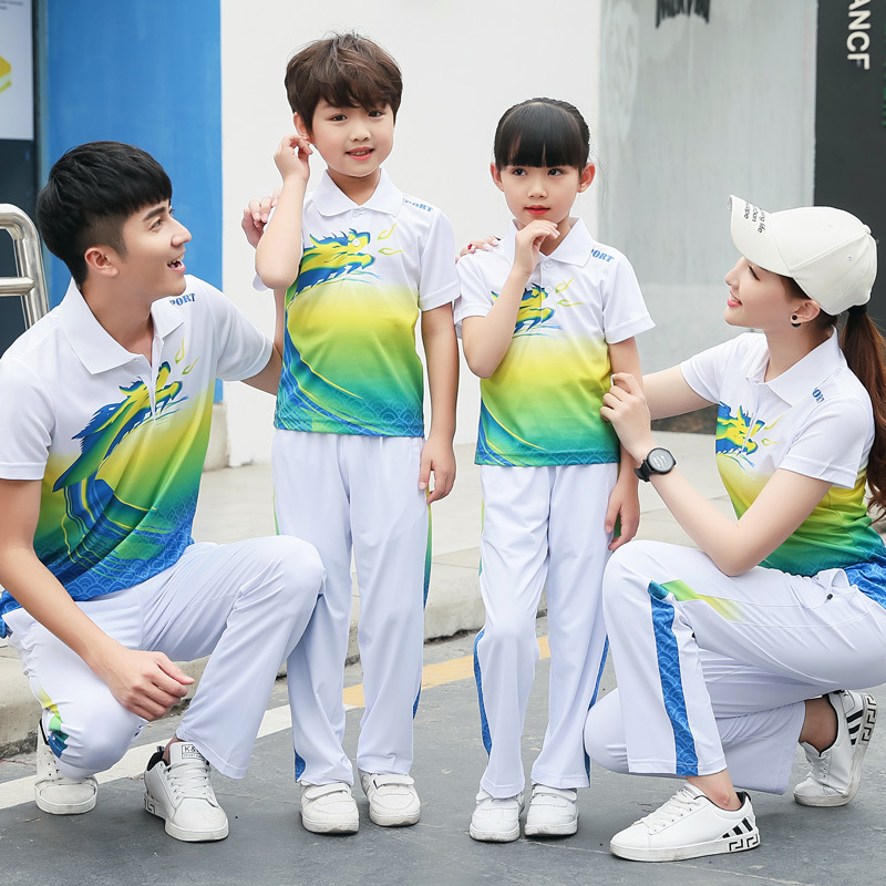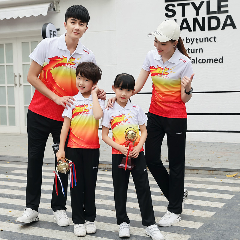 중국 드림 반팔 스포츠 세트 남녀 부모-자식대회 수상 세트 세트 스퀘어 댄스 배드민턴 팀 세트