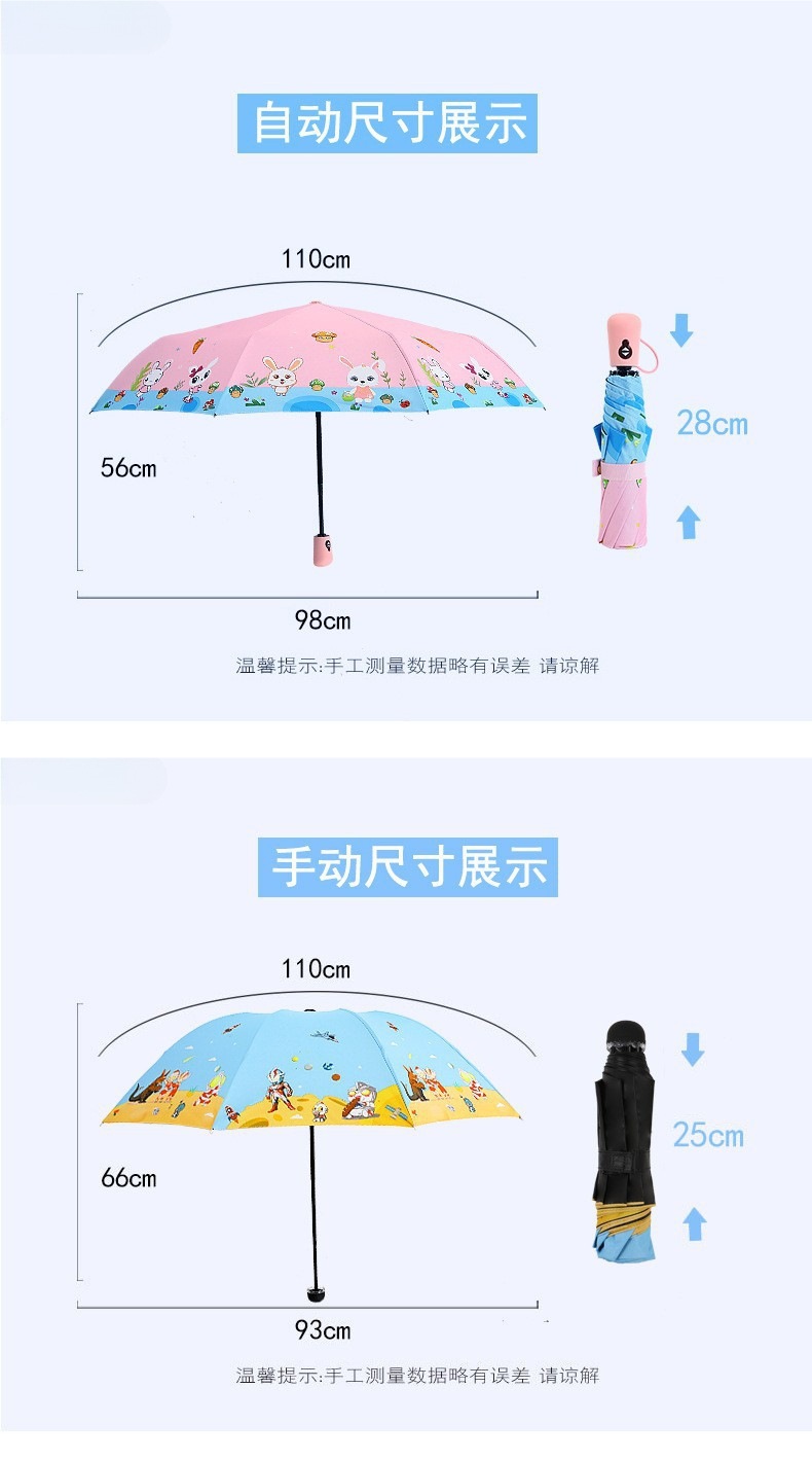 초등학생 소년 소녀를위한 어린이 우산 접이식 경량 소형 완전 자동 소년 소녀 학생 어린이 만화 합금 없음스토어 가기