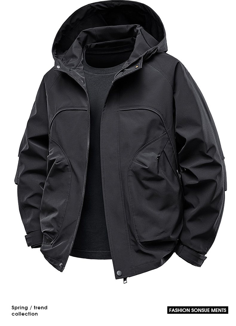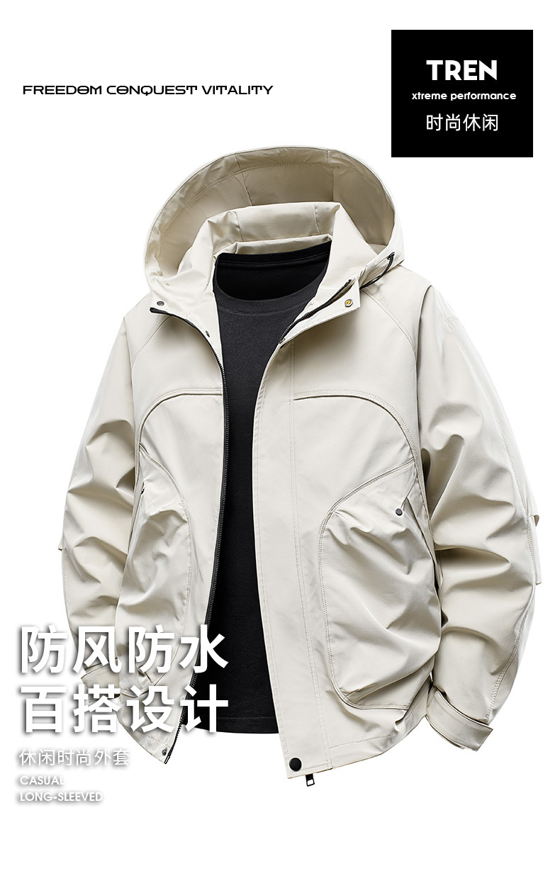 남성용 스포츠 아웃도어 단층 재킷 후드 방풍 방수 봄 가을 등산 재킷 아웃도어 단층