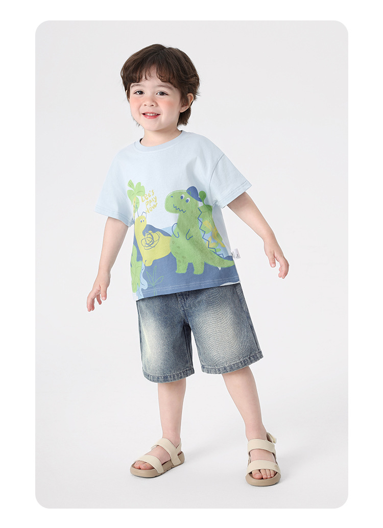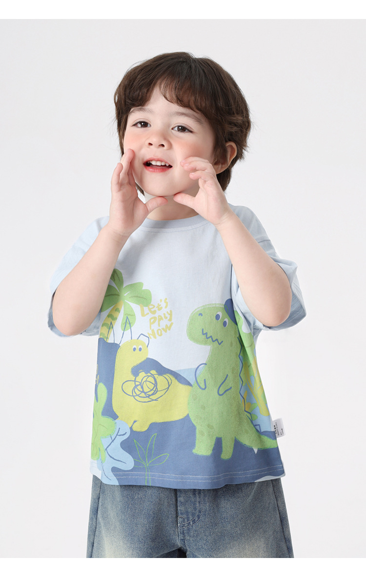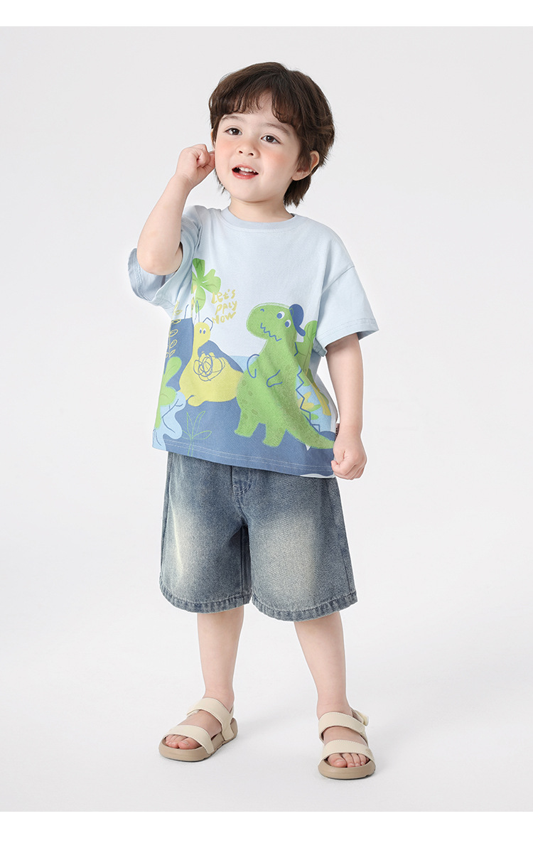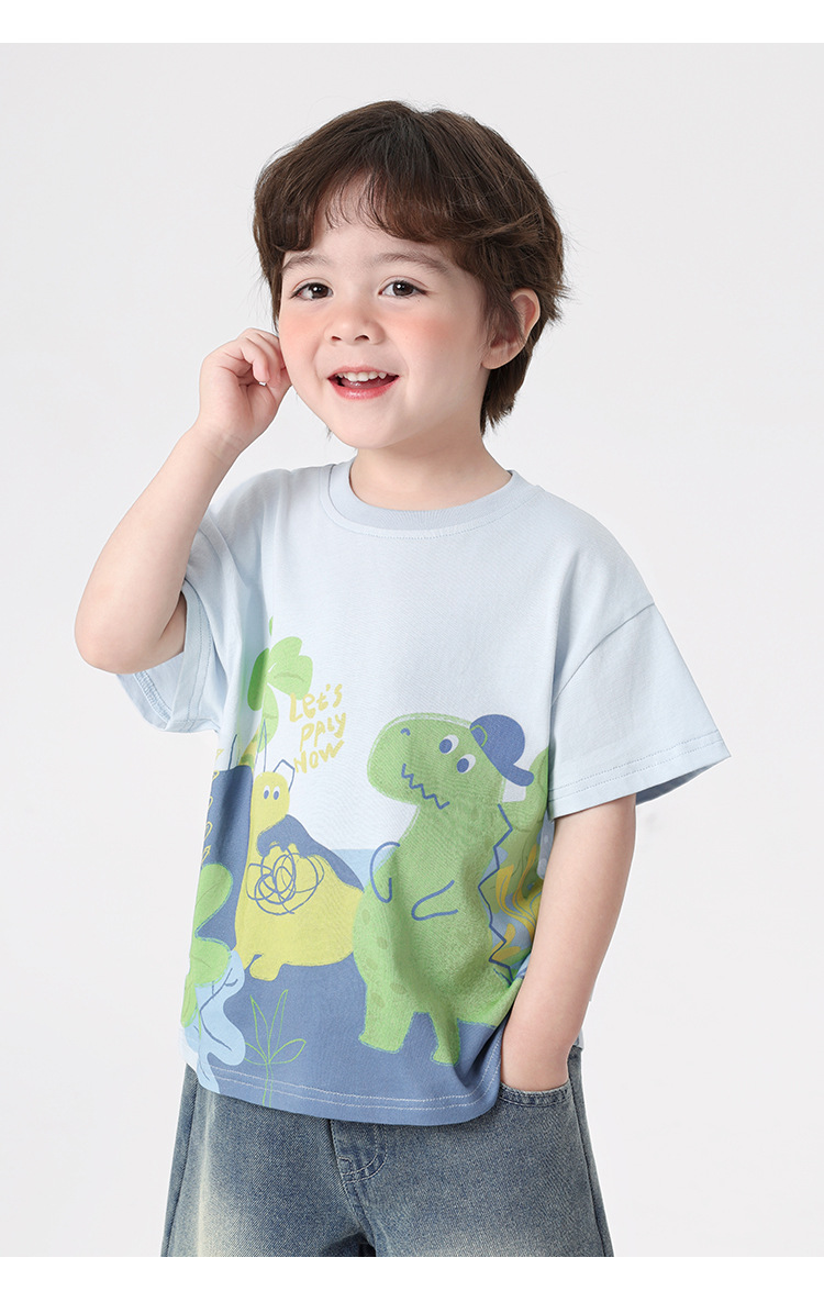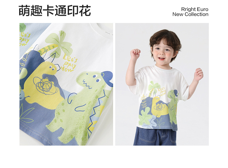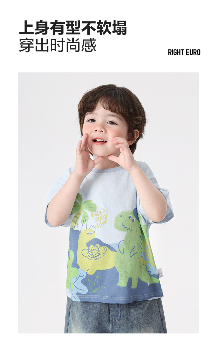 오른쪽과 유럽 소년 만화 인쇄 반팔 티셔츠 여름 아동 의류 아동 베이비 탑 반팔 2025 여름스토어 가기