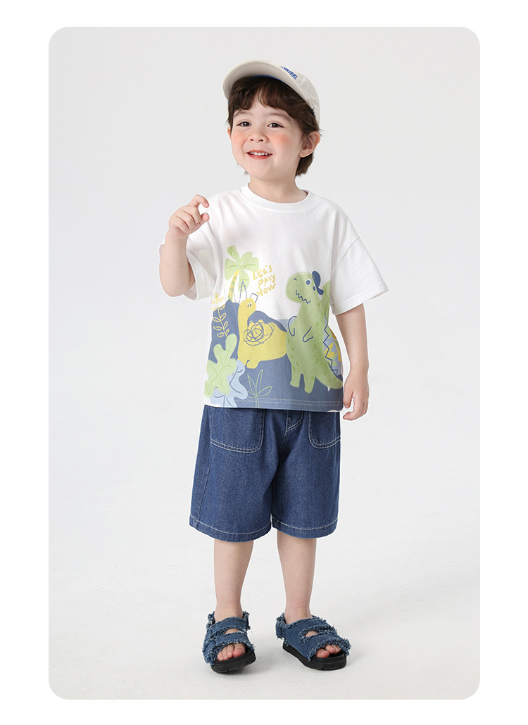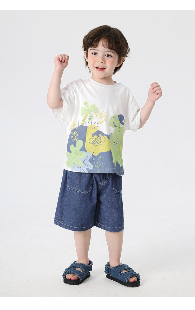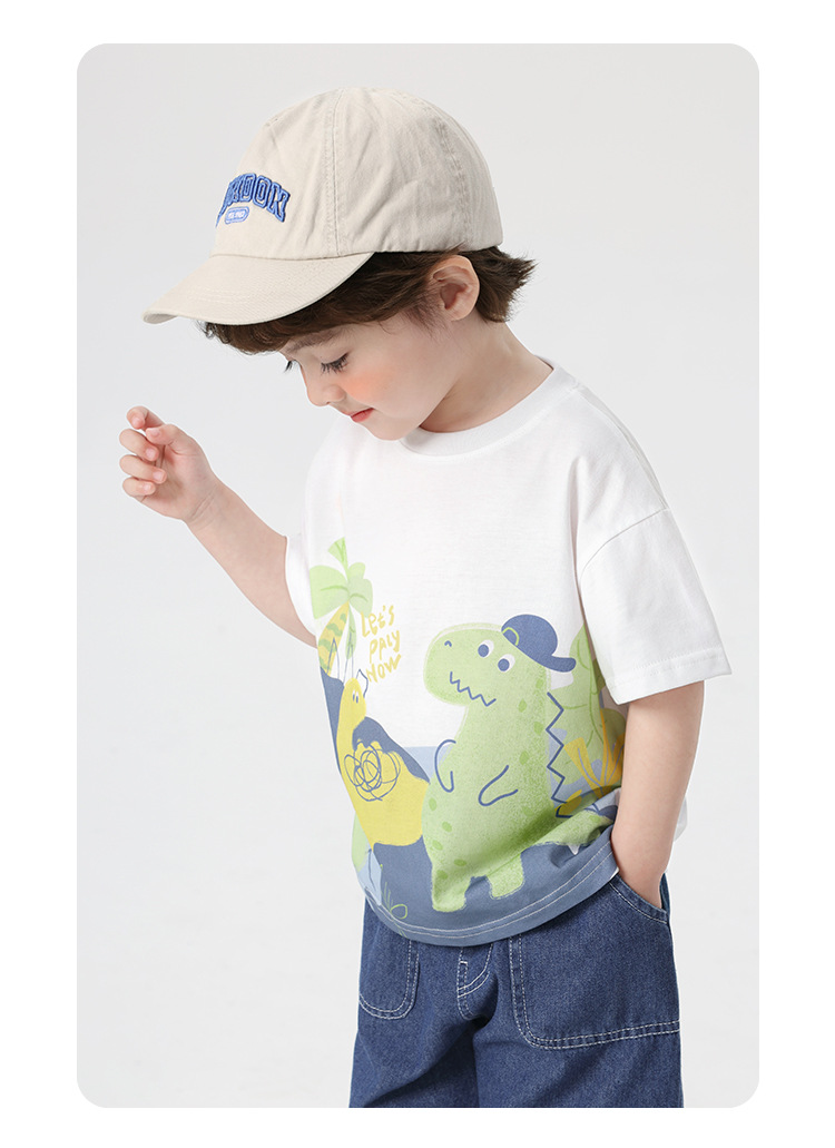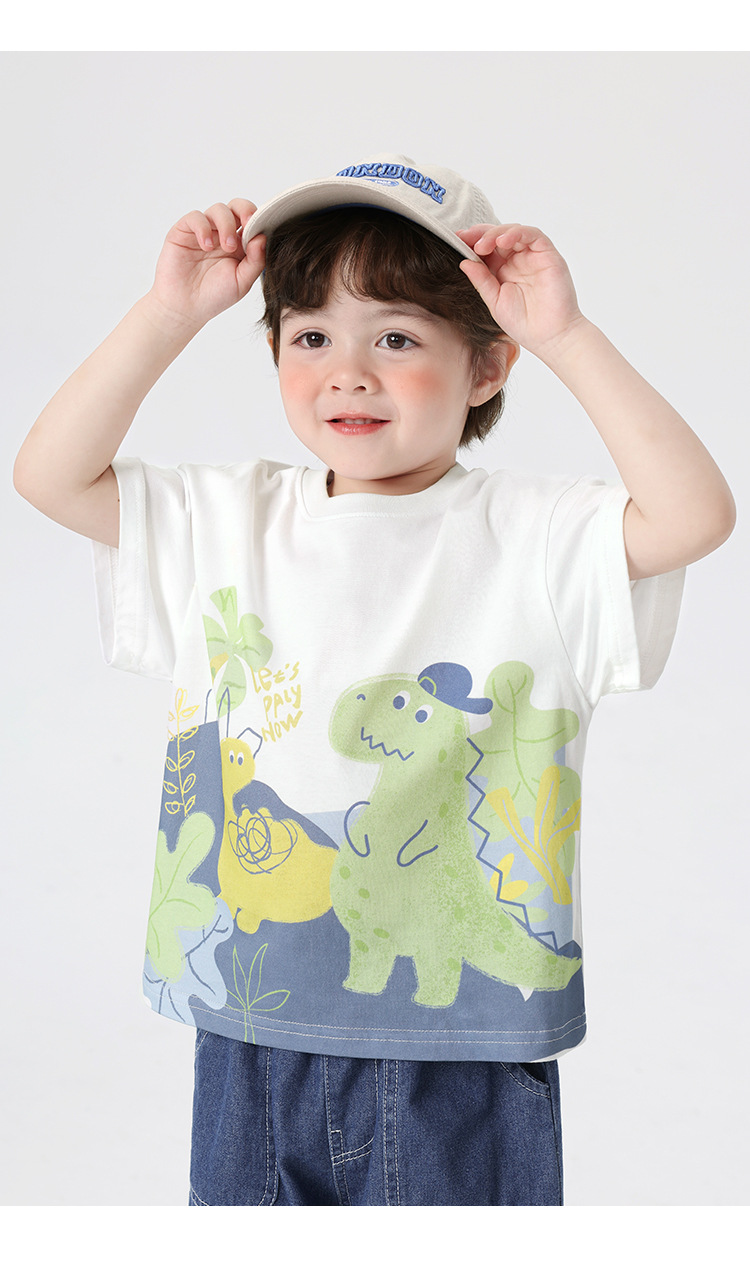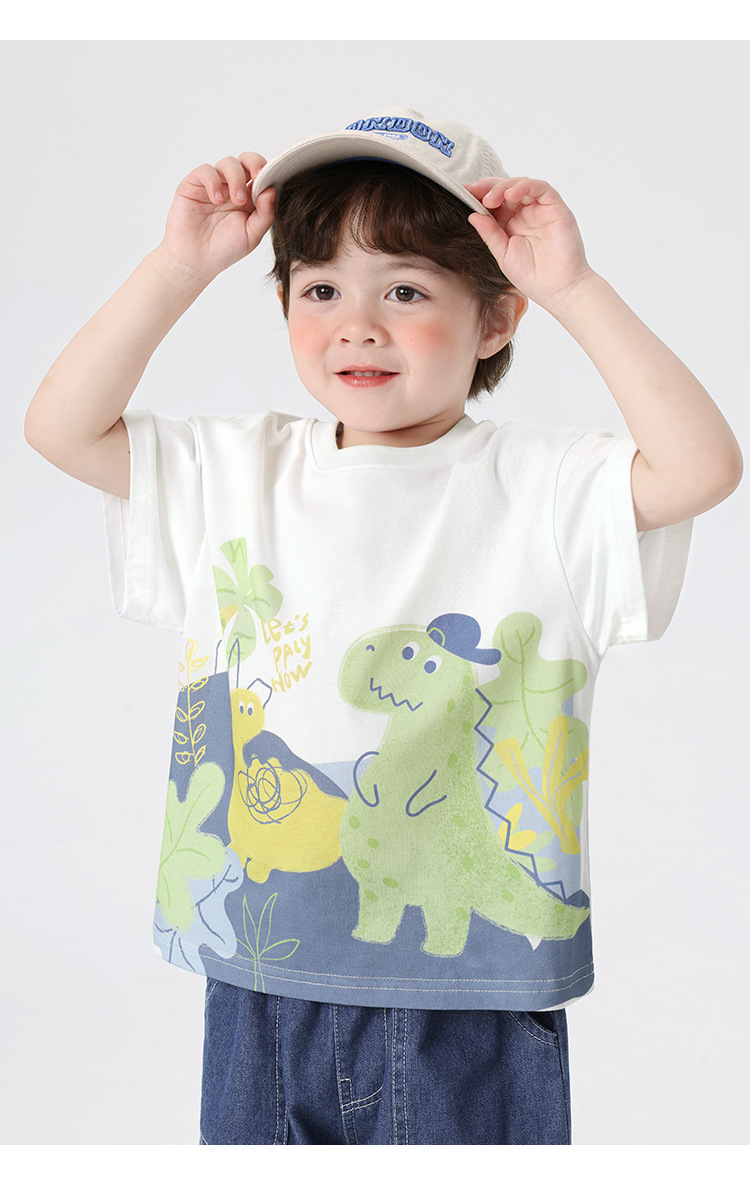오른쪽과 유럽 소년 만화 인쇄 반팔 티셔츠 여름 아동 의류 아동 베이비 탑 반팔 2025 여름스토어 가기