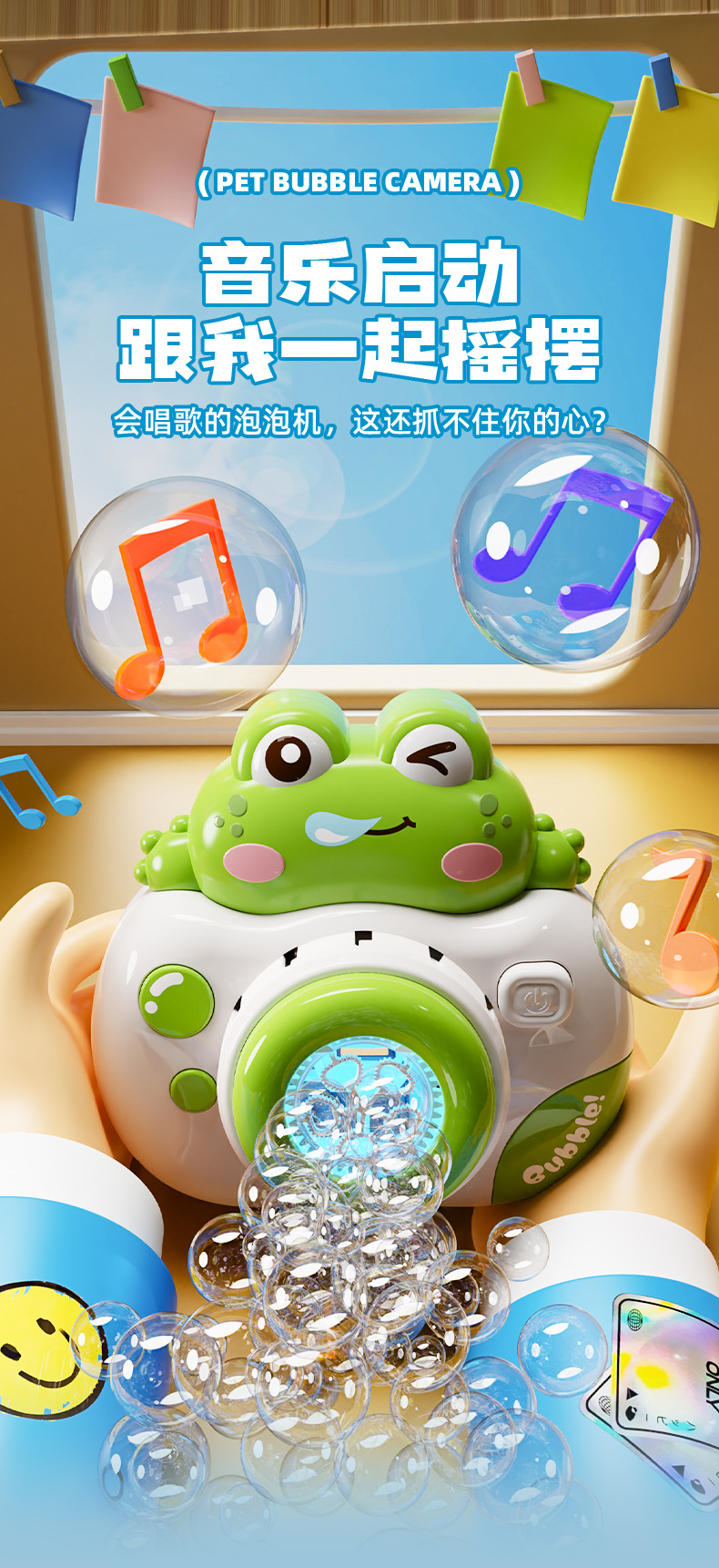 • 배터리 모델 [꼬마개구리 버블 카메라] 생수 2병 + 배터리 4개 전자상거래 박스