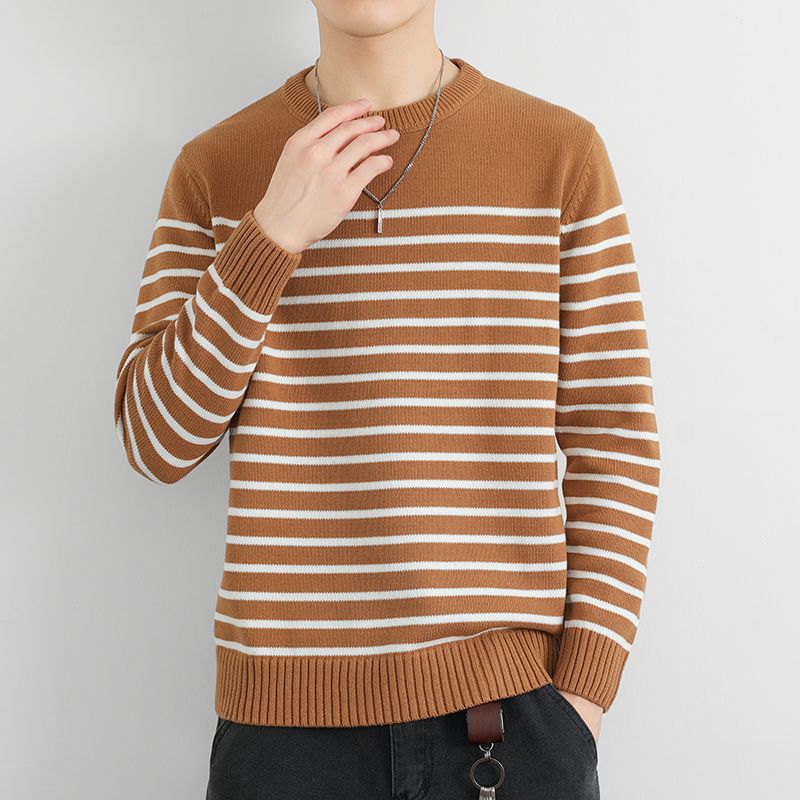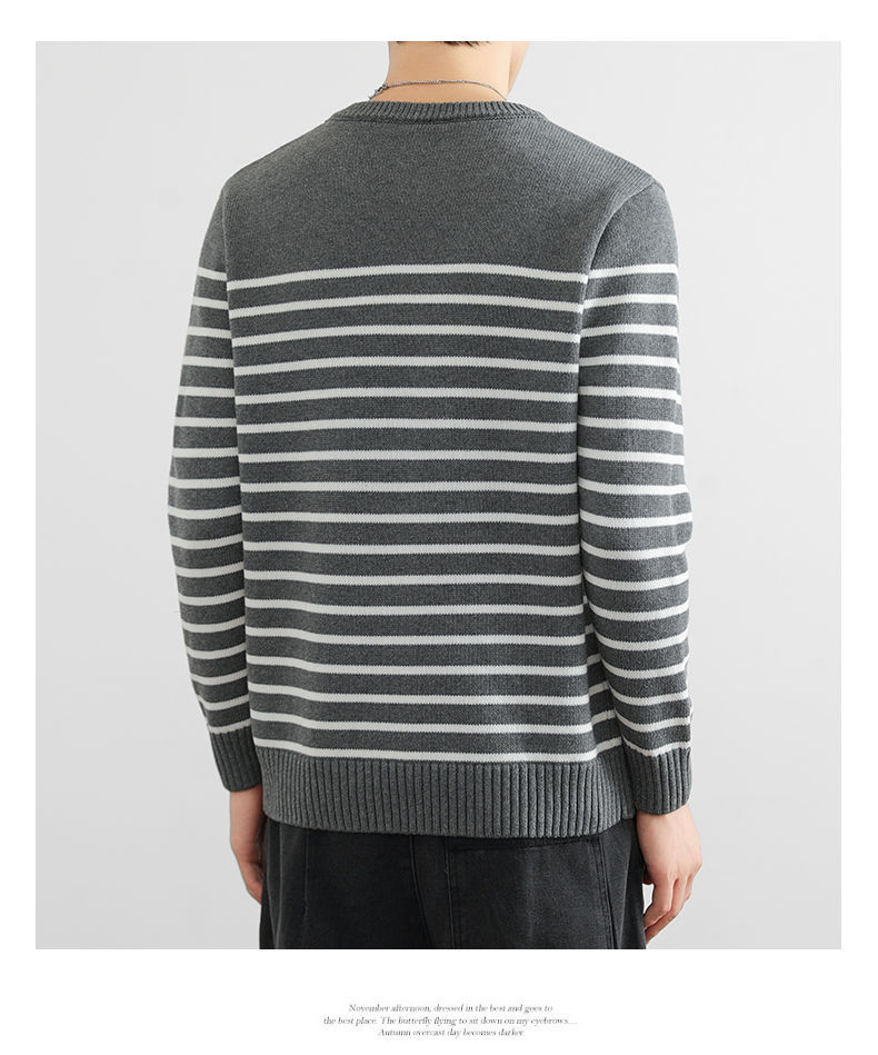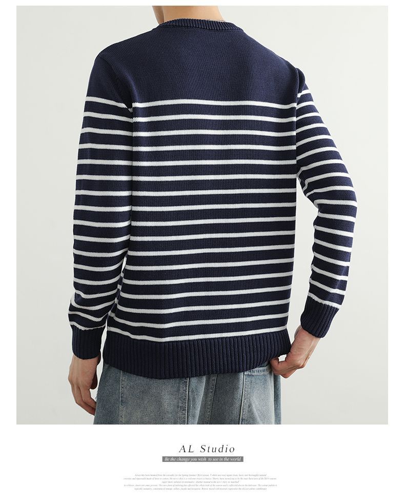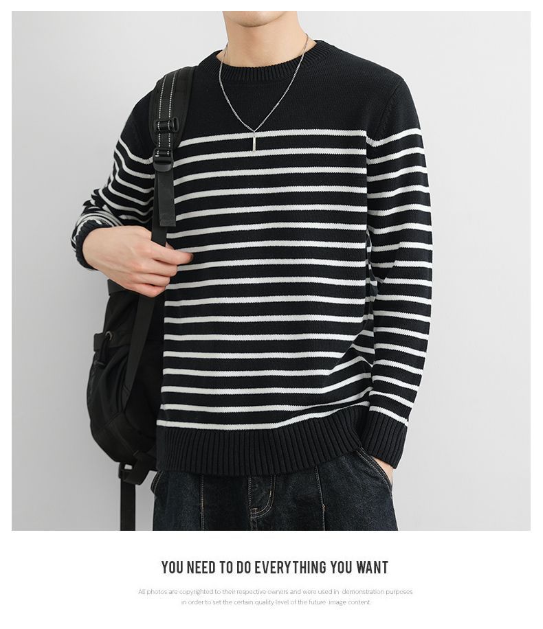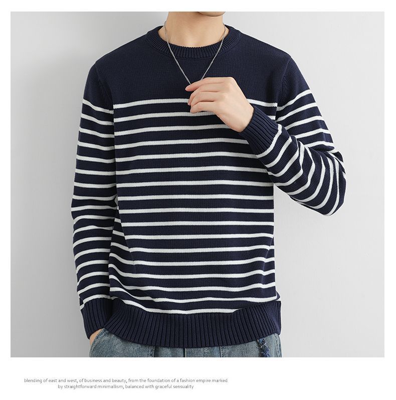 남성용 일본 줄무늬 니트 스웨터, 2024 가을 겨울 신상 대비색 베이스 레이어 스웨터, 따뜻한 긴팔 스웨터스토어 가기