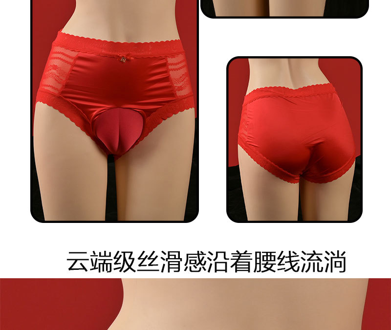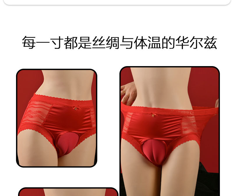 2025 하이 웨이스트 새틴 실크 오일 광택 초대형 사이즈 남성용 실키 보우 통기성 섹시한 레드 트라이앵글 레이스스토어 가기