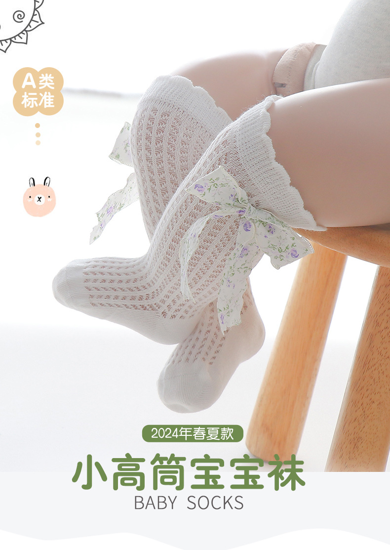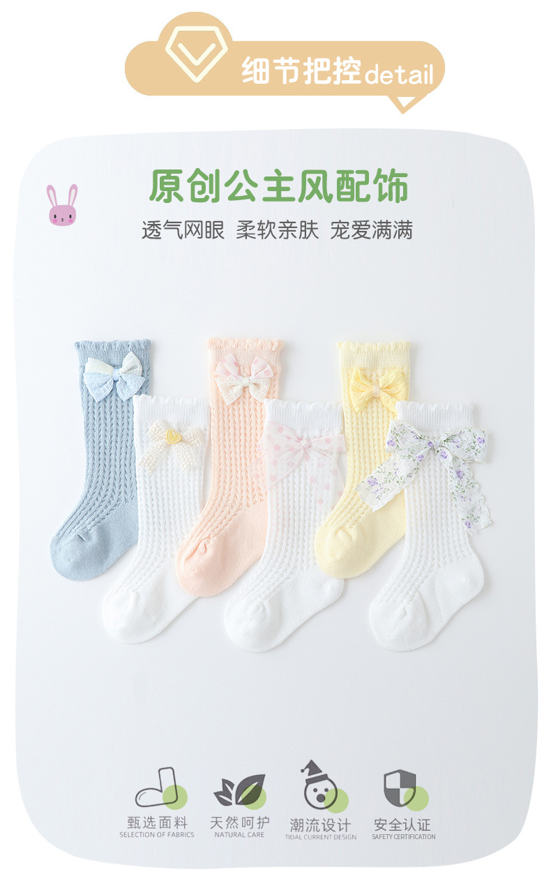 Xiyujia 2025 봄과 여름 새로운 아기 양말이 통기성 꽃 활 공주 아기 클래스를 빗질했습니다