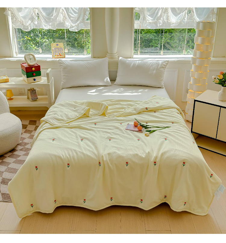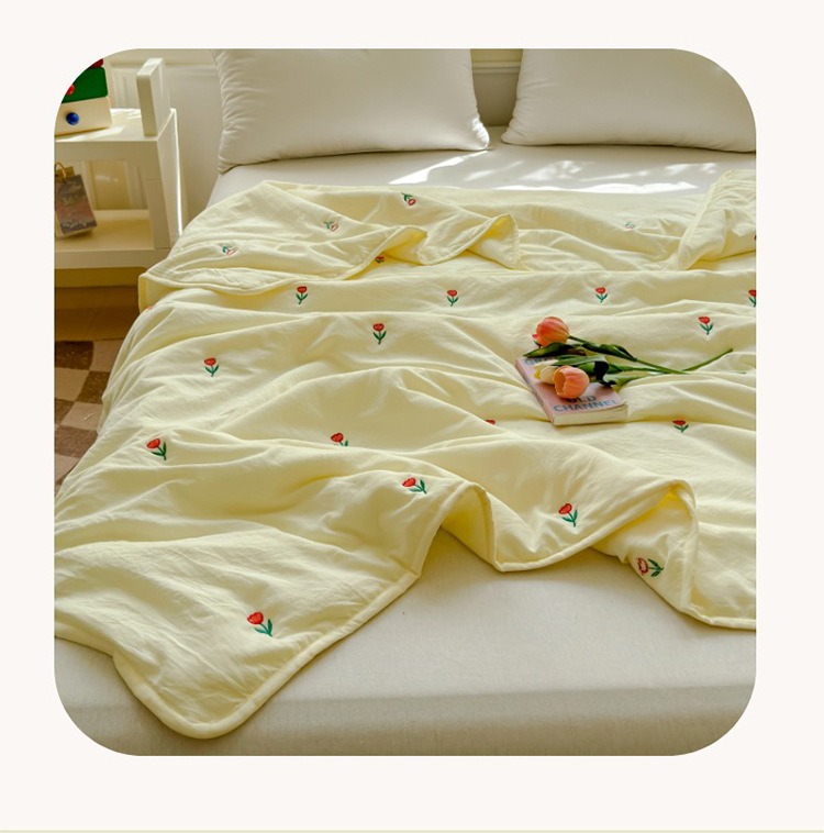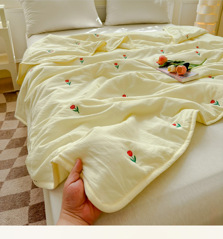 2025 수 놓은 면화 여름 이불 기계 세탁기 어린이 여름 시원한 이불 경량 기숙사 싱글 더블 봄 및 여름 에어컨 이불