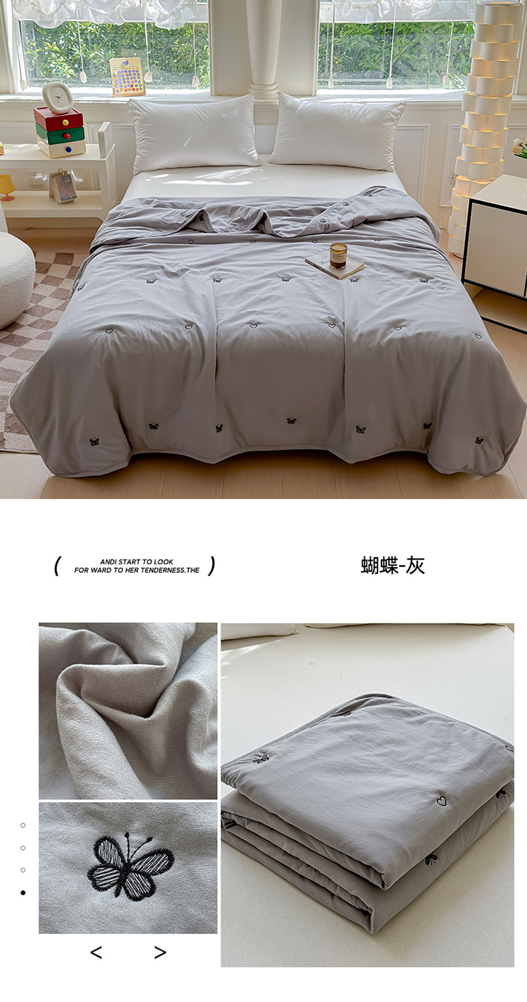 2025 수 놓은 면화 여름 이불 기계 세탁기 어린이 여름 시원한 이불 경량 기숙사 싱글 더블 봄 및 여름 에어컨 이불스토어 가기