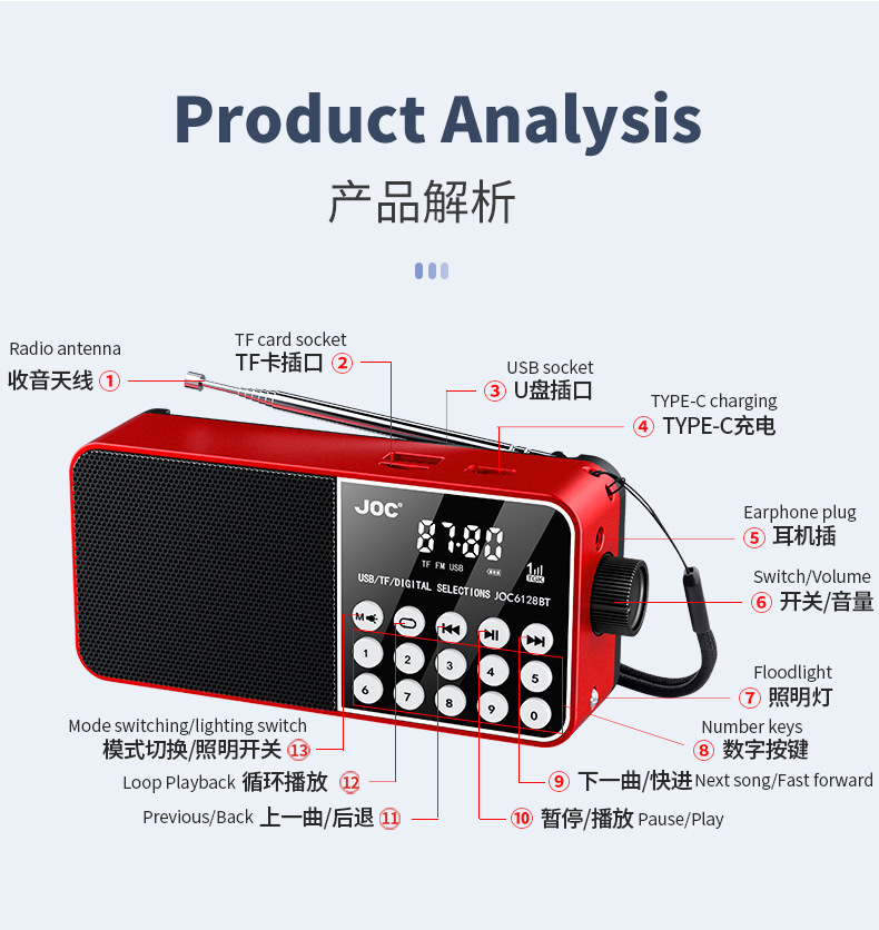 디지털 버튼 라디오는 TF 카드 U 디스크 블루투스 FM 충전 노인을위한 2024 새로운 라디오를 삽입할 수 있습니다.스토어 가기