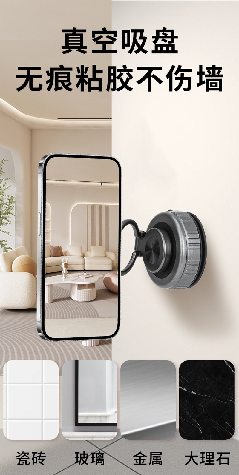 국경 간 새로운 진공 흡입 컵 휴대 전화 데스크탑 홀더 접이식 텔레스코픽 720도 회전 자기 흡입 홀더 도매스토어 가기