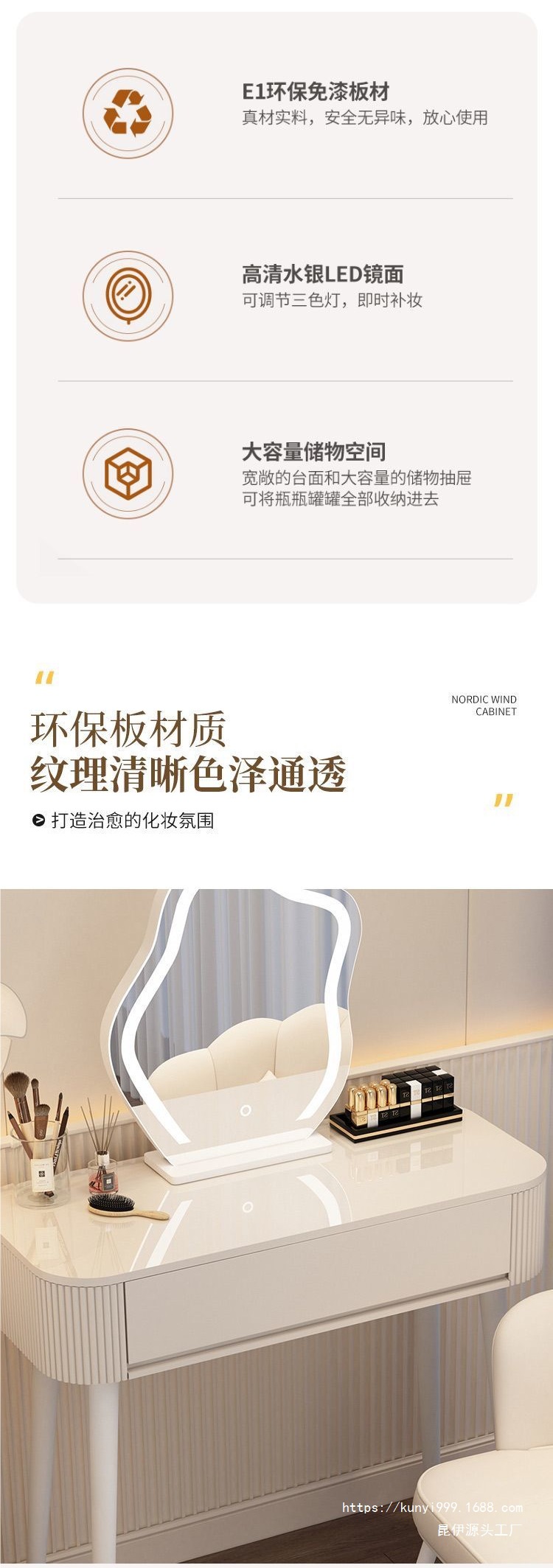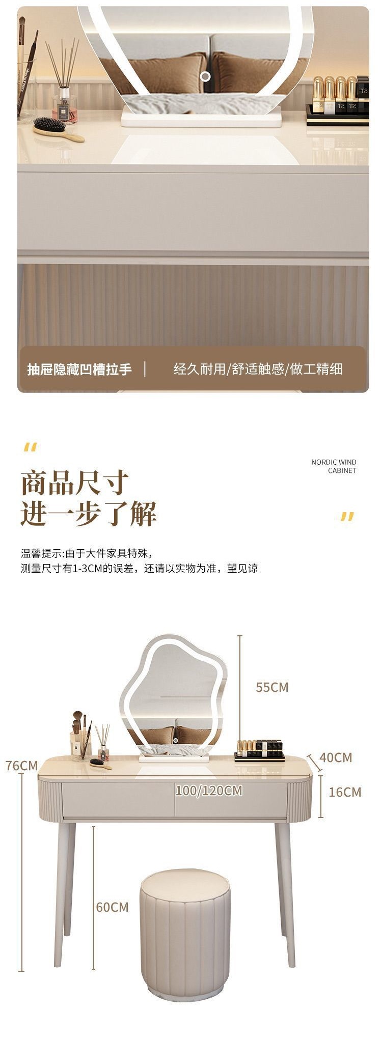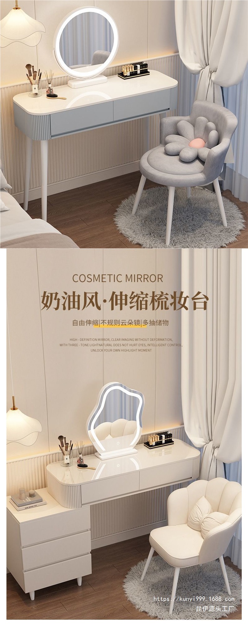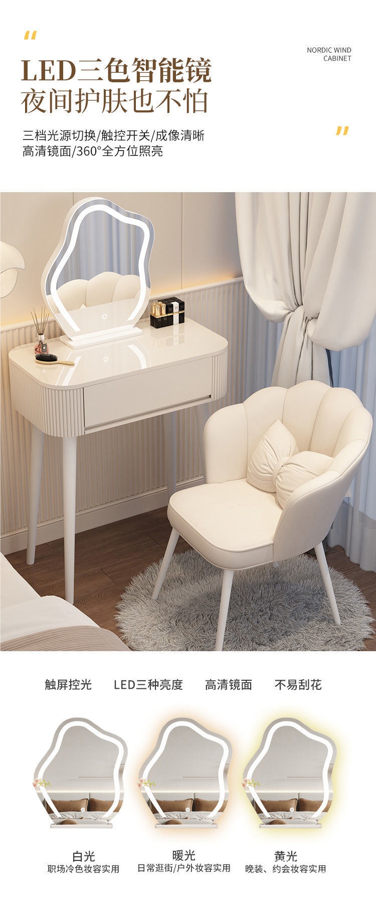 심플한 흰색 화장대, 침실, 심플하고 모던한 소형 화장대, 가벼운 럭셔리 와비사비 크림 스타일 화장대