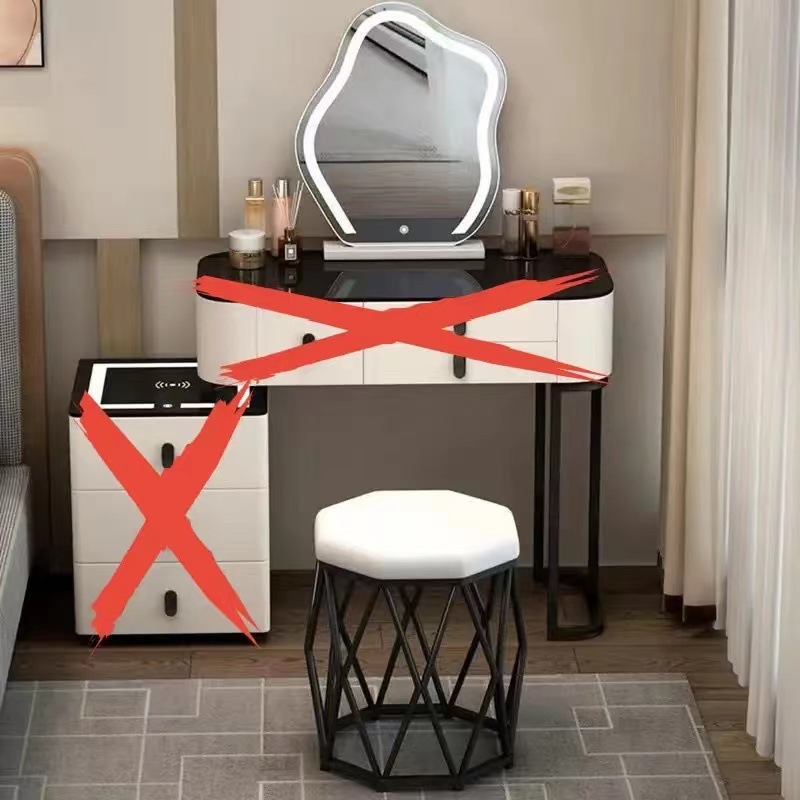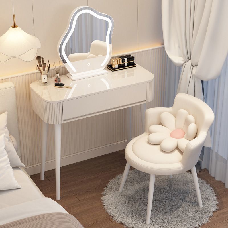 • 심플한 화이트 50cm 테이블 + LED 거울 + 작은 꽃의자