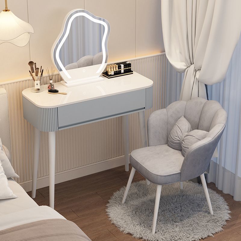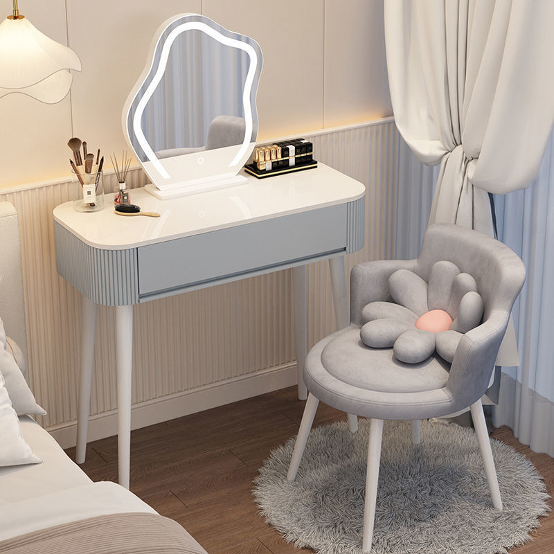 • 심플 그레이 70cm 테이블 + LED 거울 + 그레이 & 화이트 꽃잎 의자