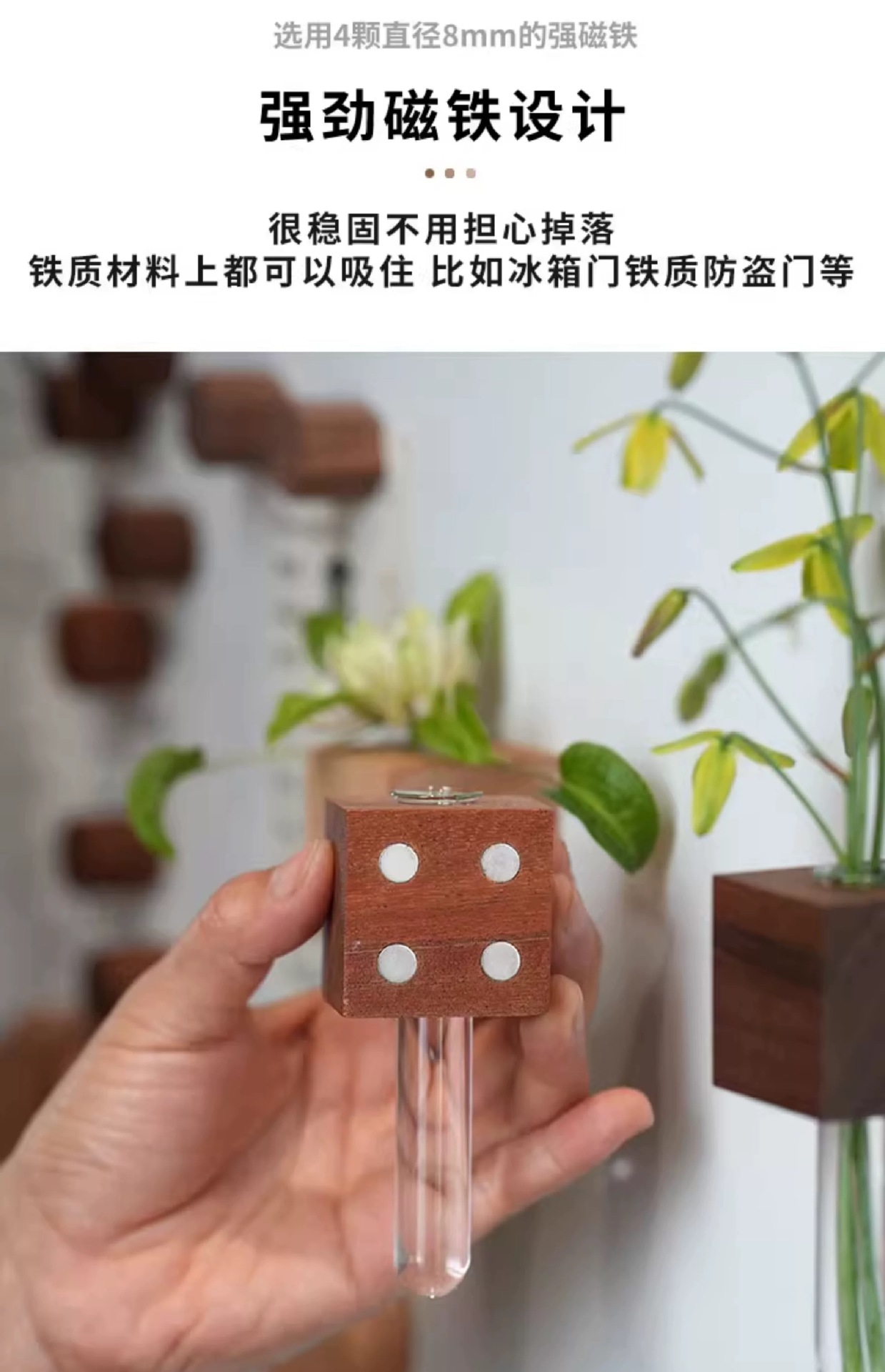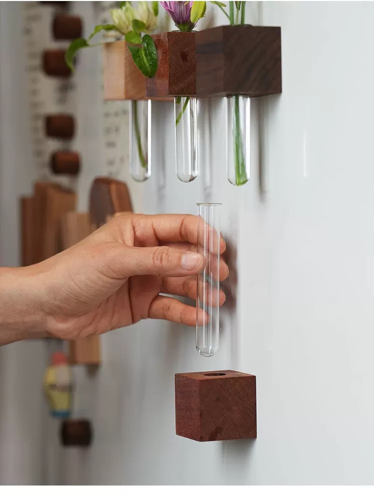 테스트 튜브 꽃병 작은 냉장고 스티커 수경 꽃 재배 꽃 장식 룸 장식품 자기 스틱 자기 유리 튜브