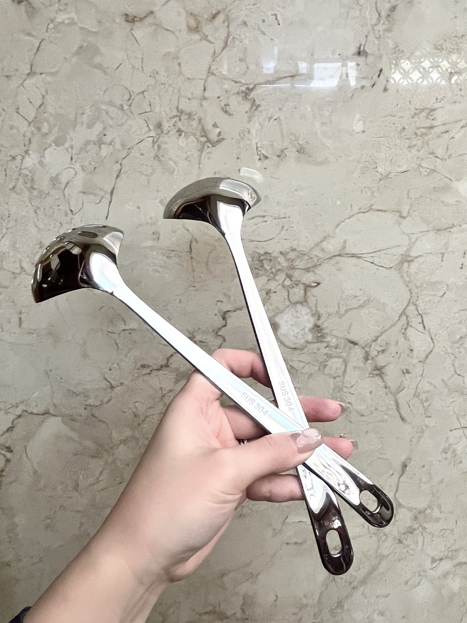 304 스테인레스 스틸 가정용 수프 스푼 냄비 스푼 주방 소쿠리 2 피스 세트 요리 도구 확장 수프 스푼 도매스토어 가기