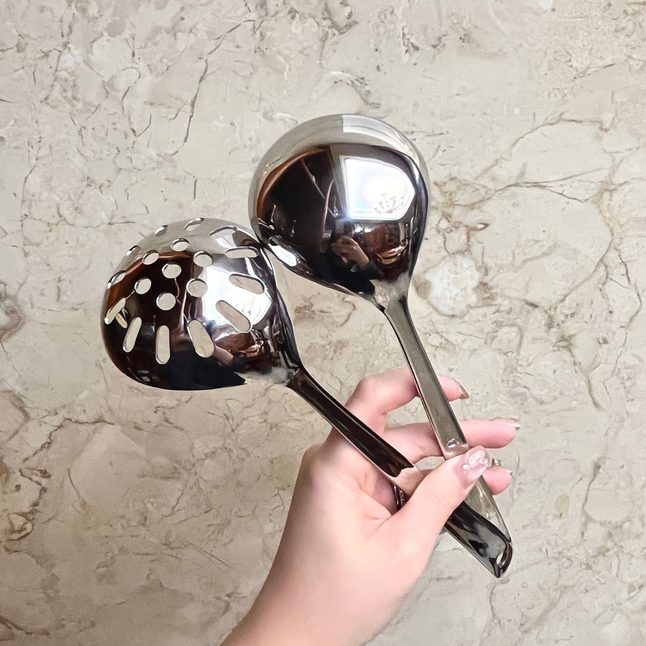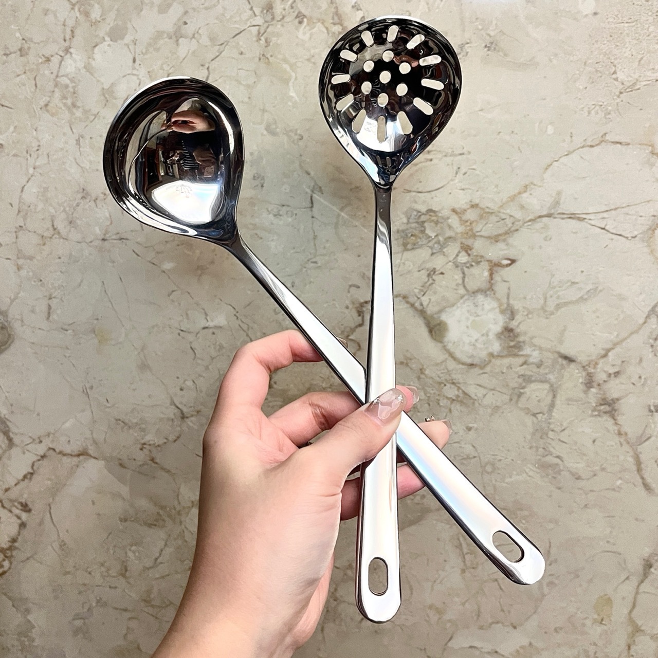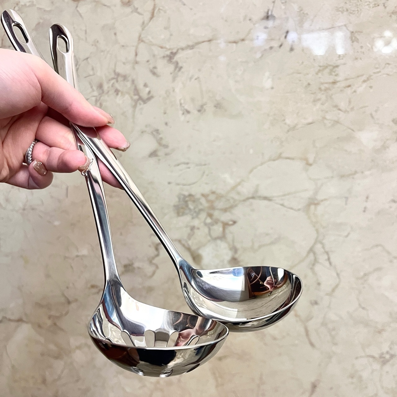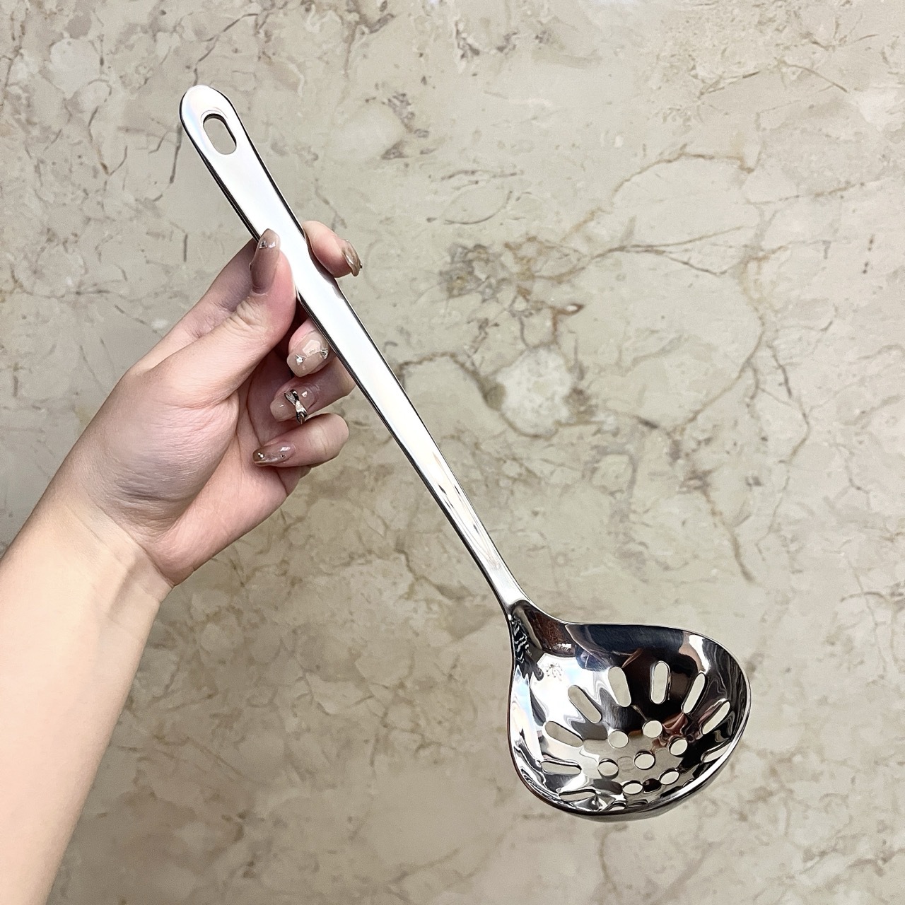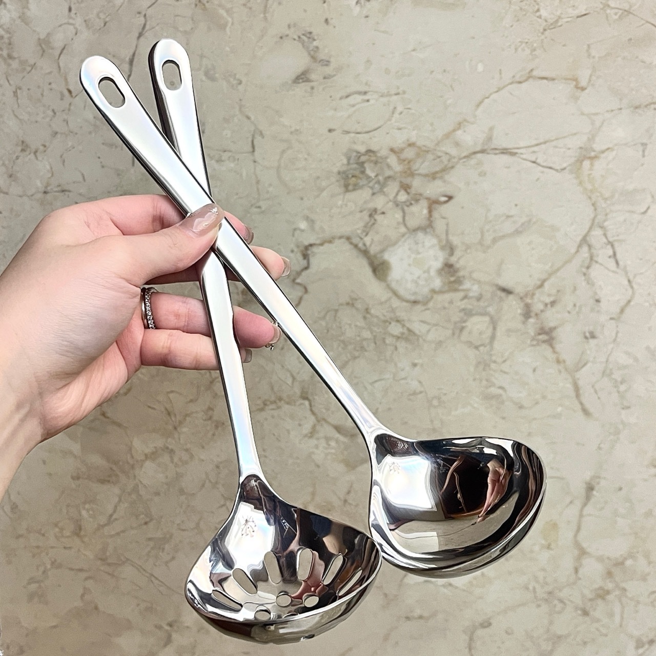 304 스테인레스 스틸 가정용 수프 스푼 냄비 스푼 주방 소쿠리 2 피스 세트 요리 도구 확장 수프 스푼 도매