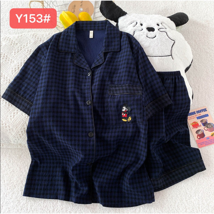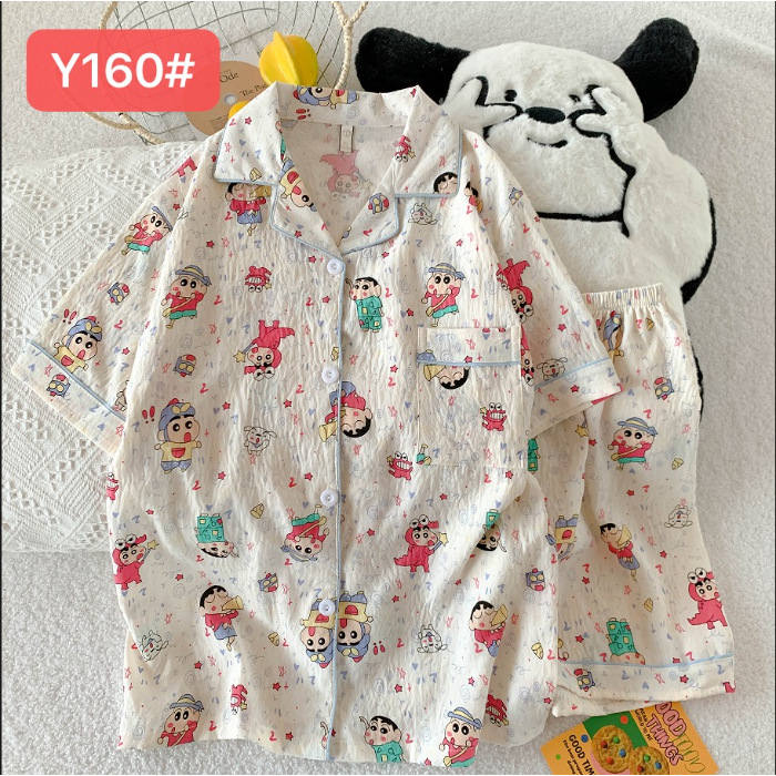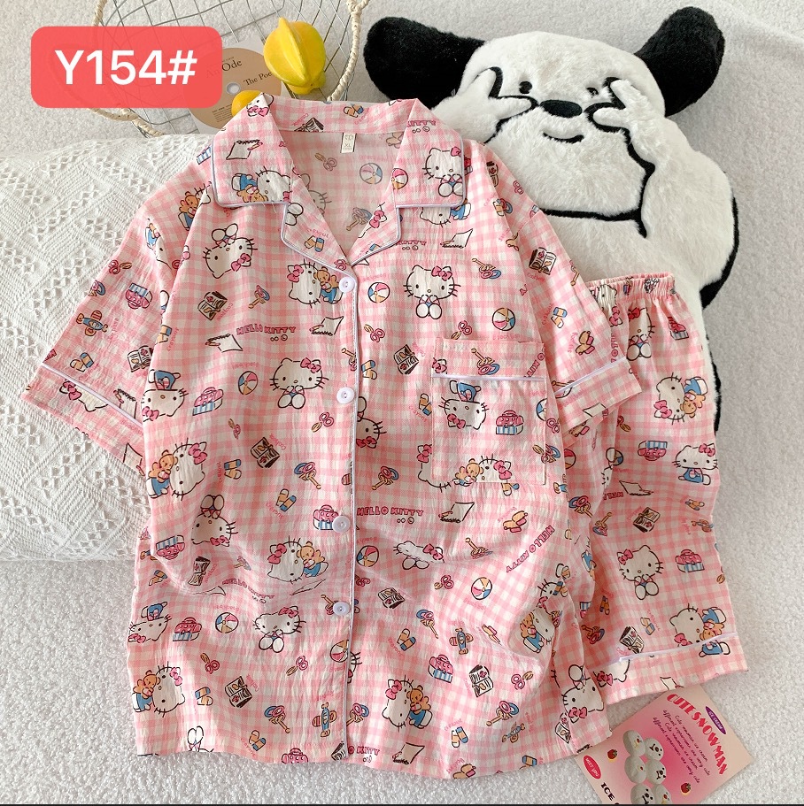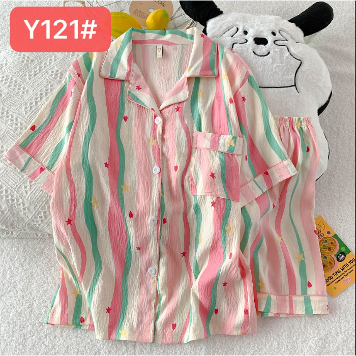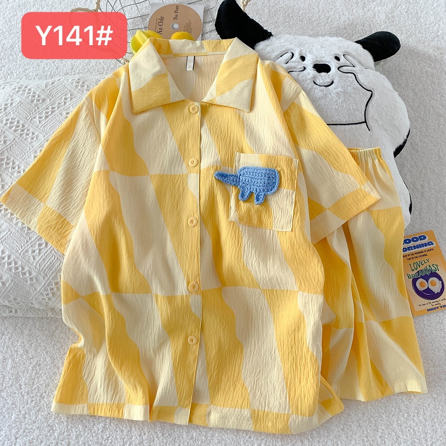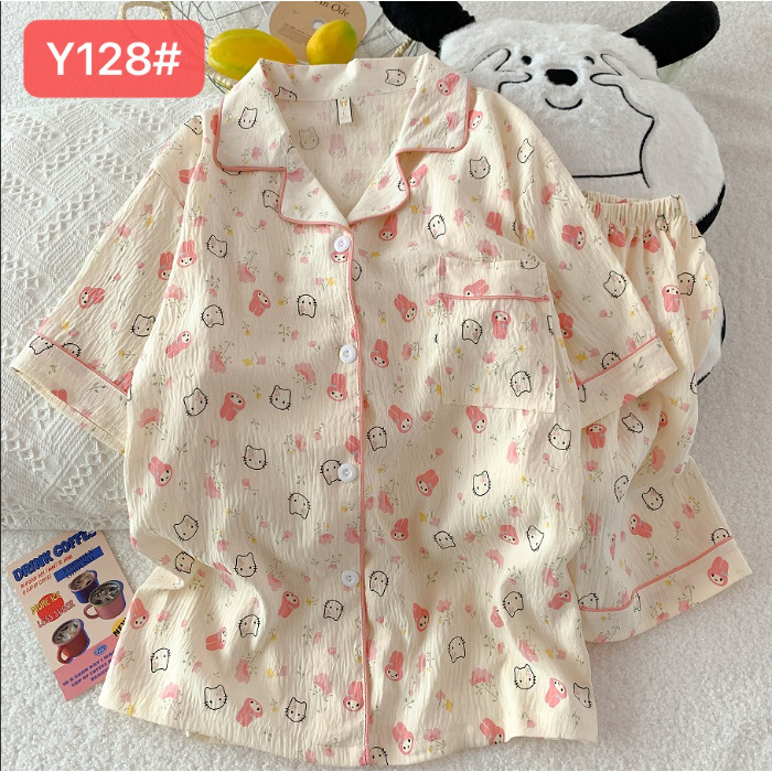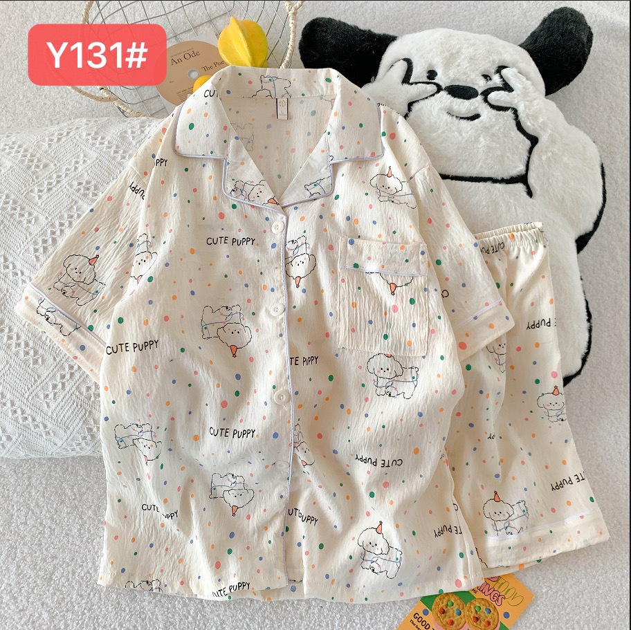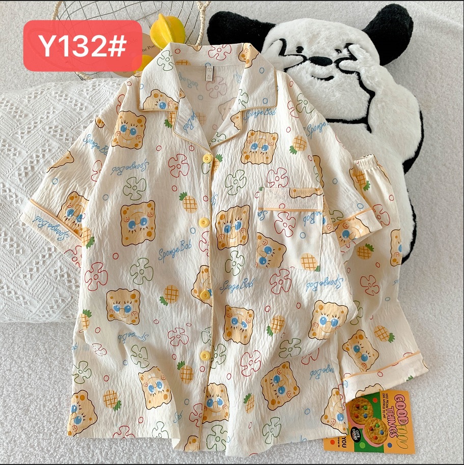 소스 공장 여름 새로운 구름면 카디건 옷깃 소녀 잠옷 짧은 소매 반바지 여성 홈 의류 세트스토어 가기