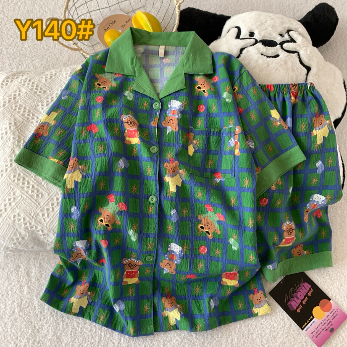 소스 공장 여름 새로운 구름면 카디건 옷깃 소녀 잠옷 짧은 소매 반바지 여성 홈 의류 세트