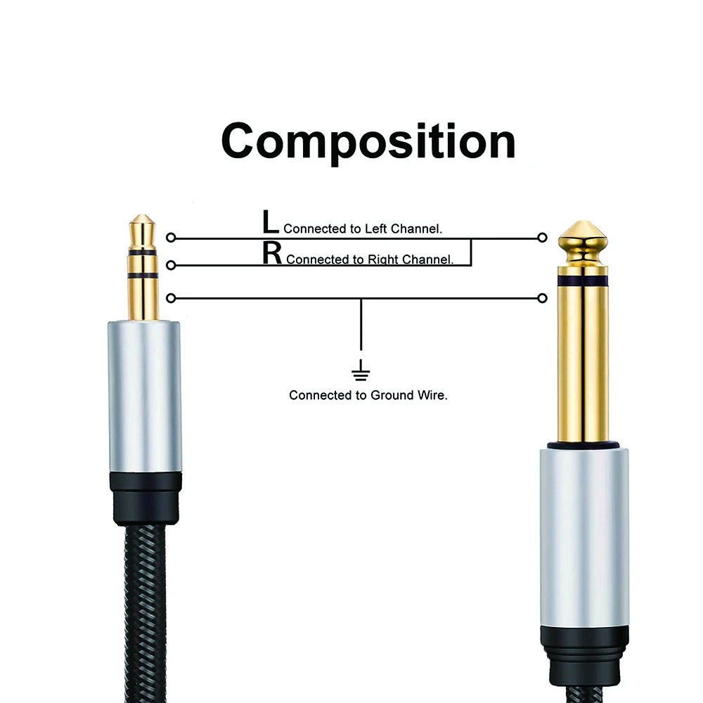 【高纯度 OFC 导体】1/4 单声道转 3.5 毫米立体声电缆由 20 AWG 4N 无氧铜制成,带有屏蔽层,确保高保真音质并提供最大的导电性和信号清晰度。音乐爱好者的绝佳选择。