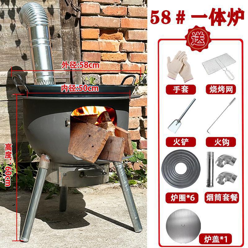 • 58 특대 + 부속품 + 화로링 3개 + 냄비 + 뚜껑 + 숟가락 - 슈점주 통합 장작 난로 [20년 보증]