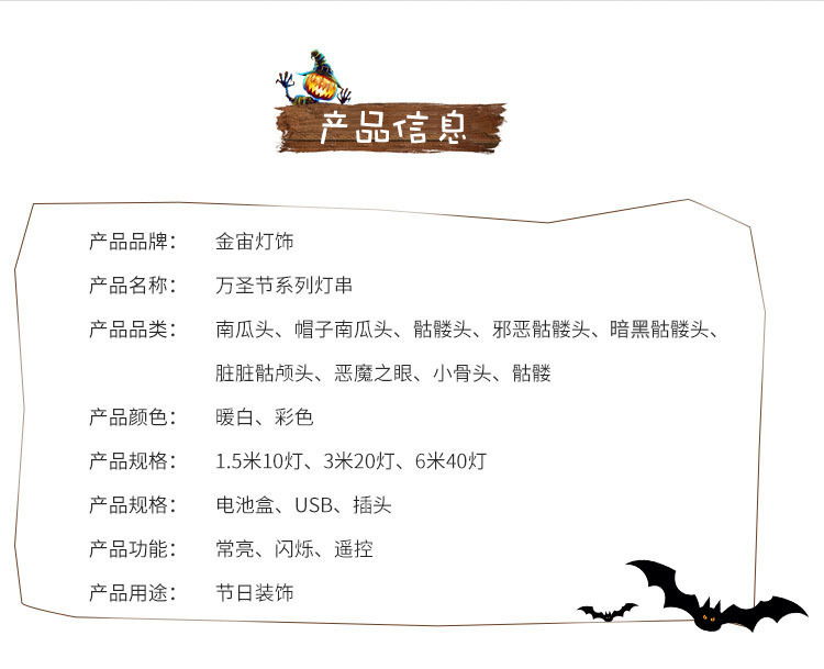 할로윈 조명 호박 빛 문자열 LED 빛나는 빛 문자열 해골 빛 장식 조명 장면 쇼핑몰 레이아웃 휴일 조명스토어 가기