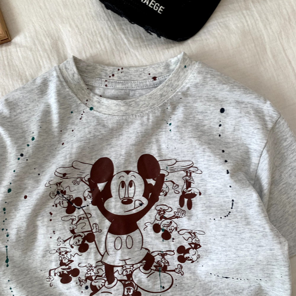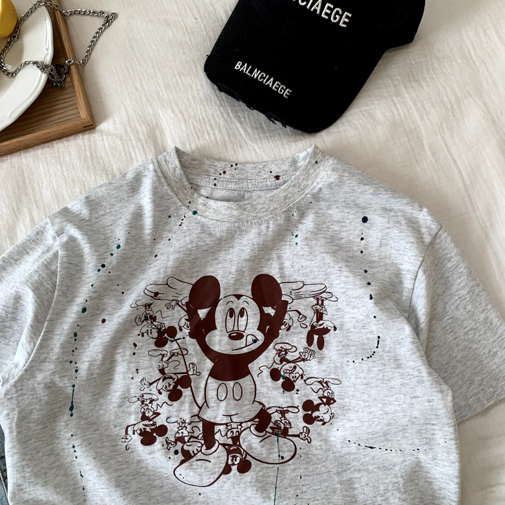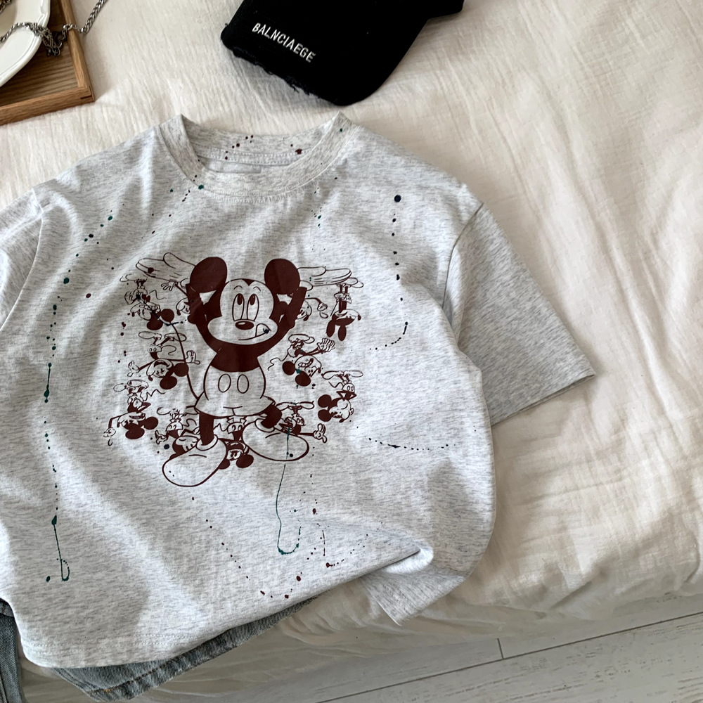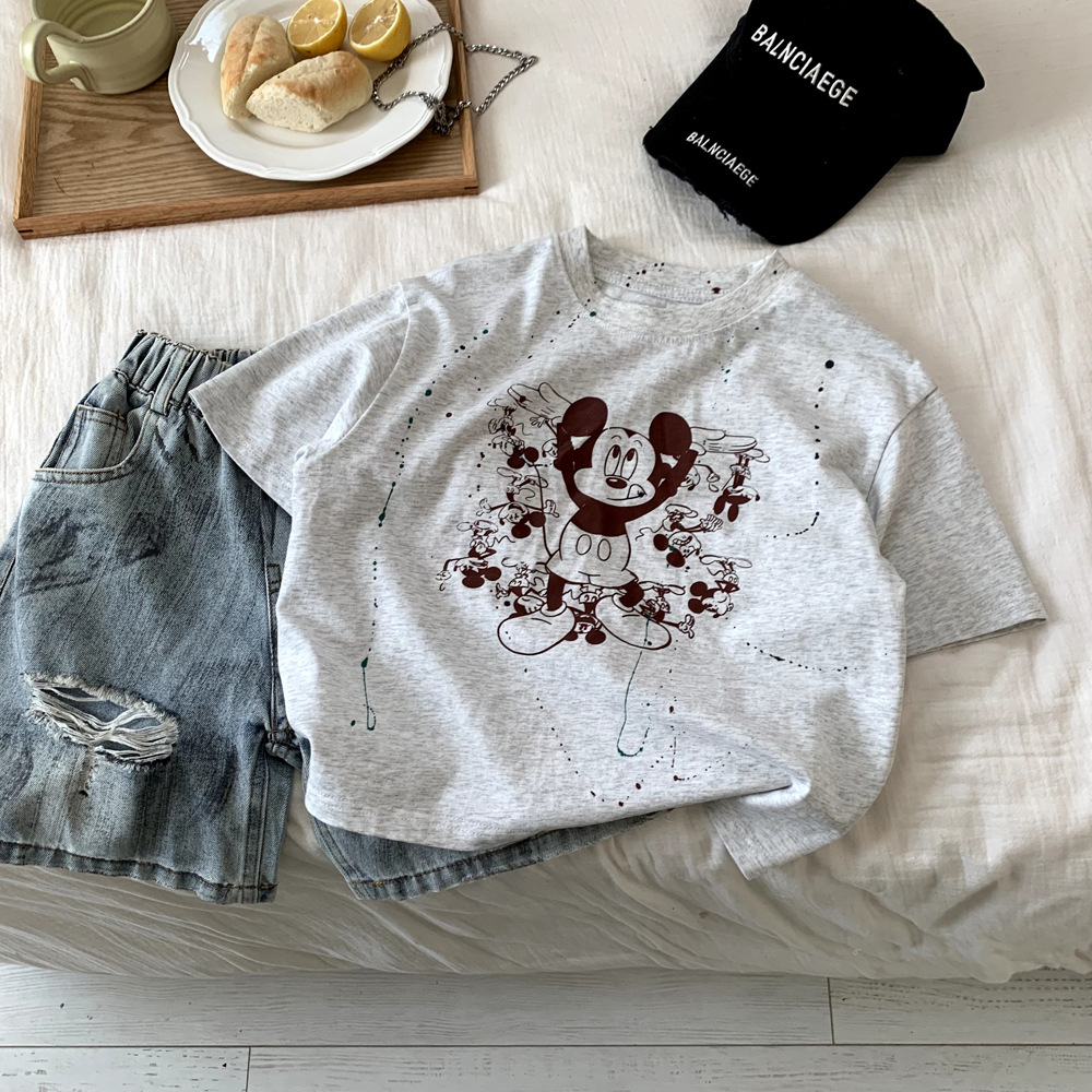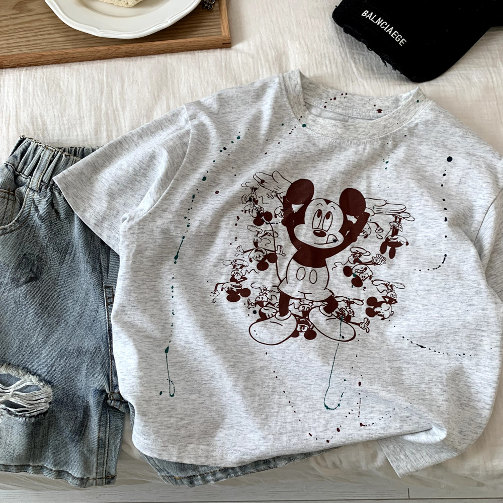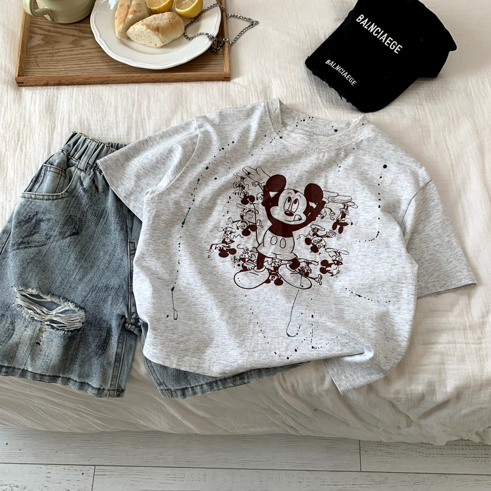 어린이 의류 소년 반팔 티셔츠 여름 면화 2025 새로운 캐주얼 만화 옷 소녀 애니메이션 탑 T