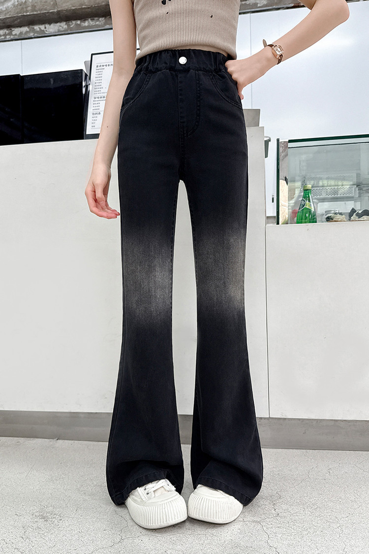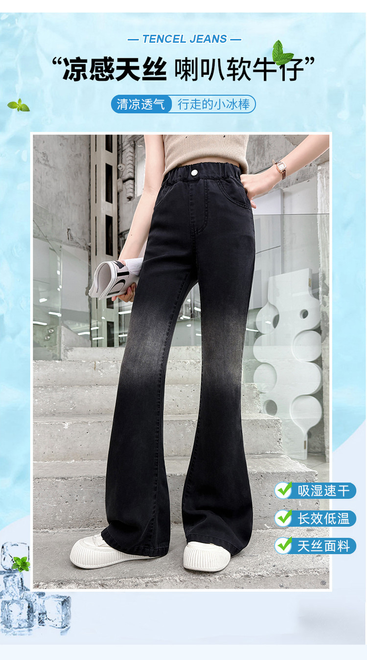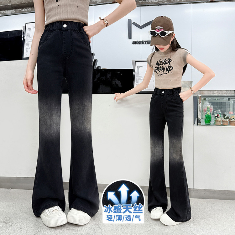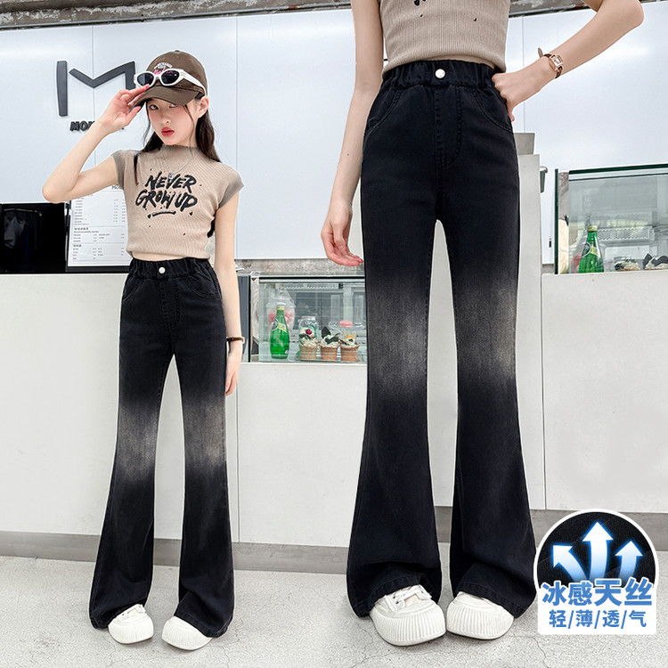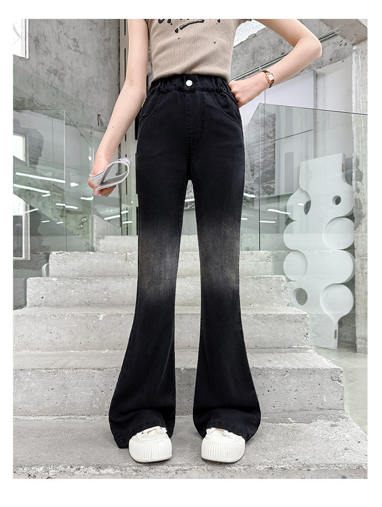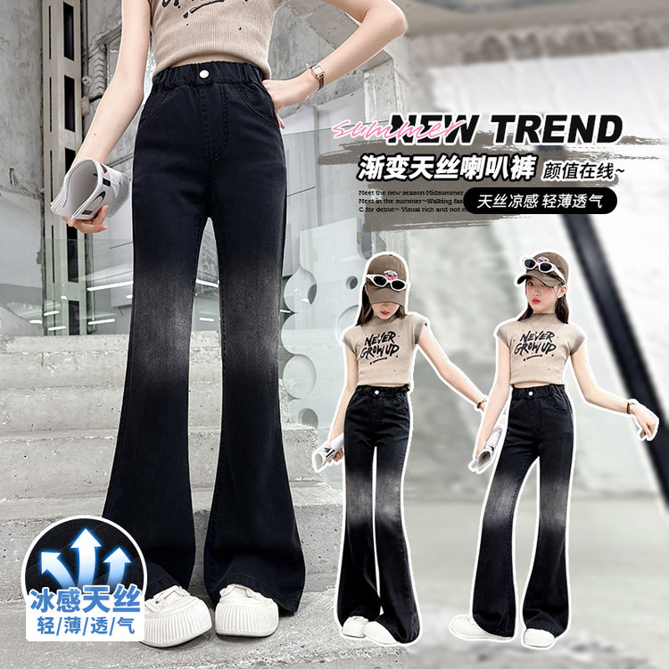 여자 푸 청바지 2025 봄과 여름 새로운 서양식 캐주얼 바지 어린이 한국식 그라디언트 텐셀 플레어 팬츠