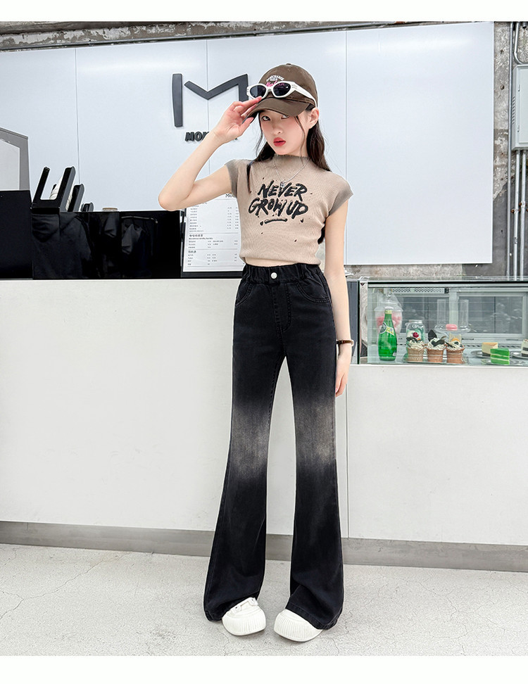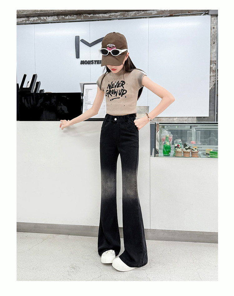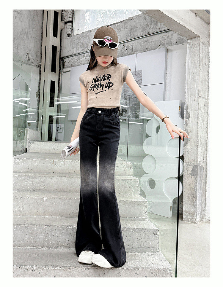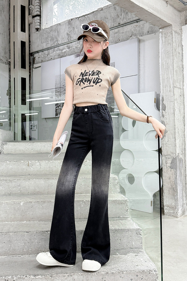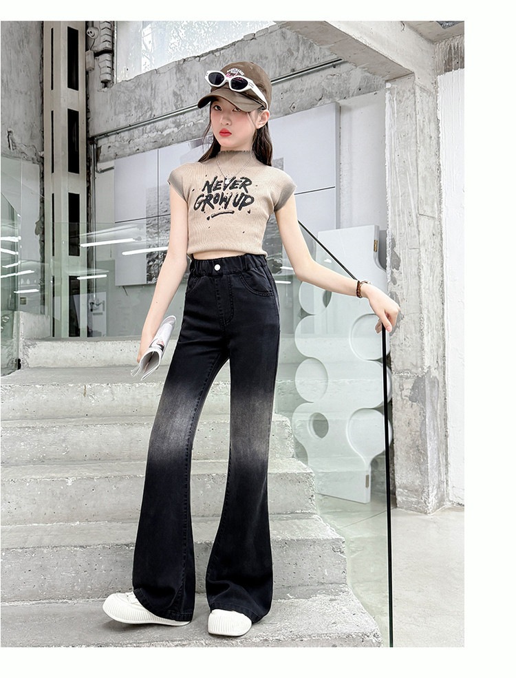여자 푸 청바지 2025 봄과 여름 새로운 서양식 캐주얼 바지 어린이 한국식 그라디언트 텐셀 플레어 팬츠