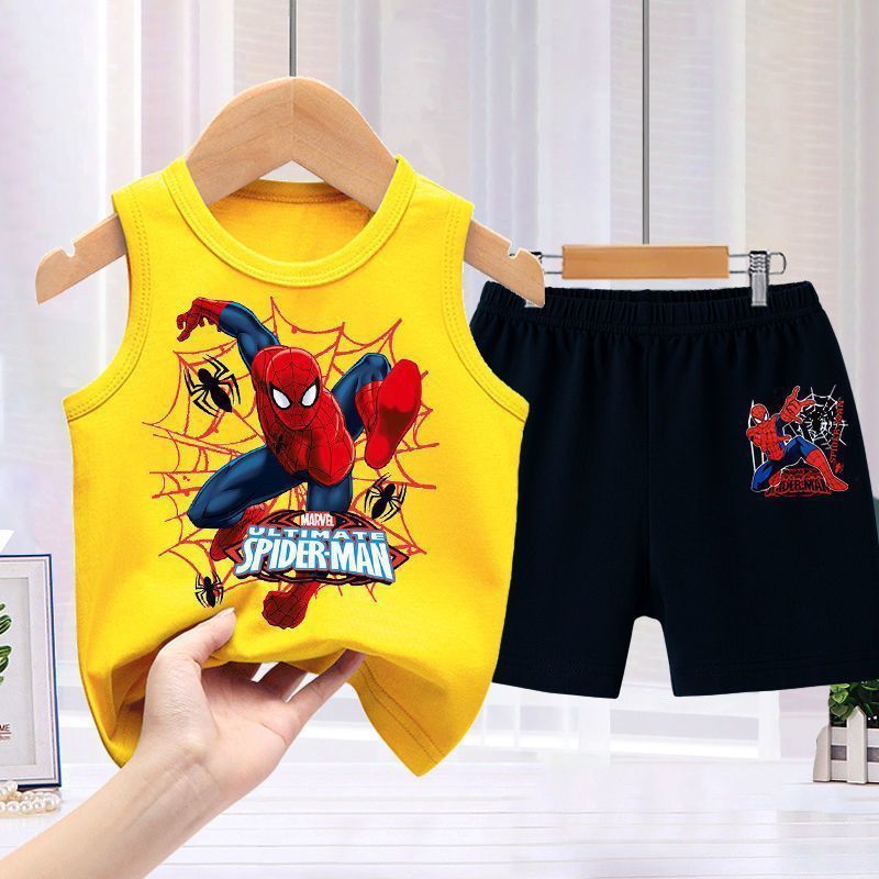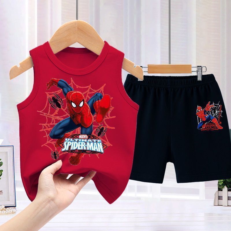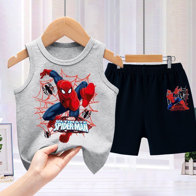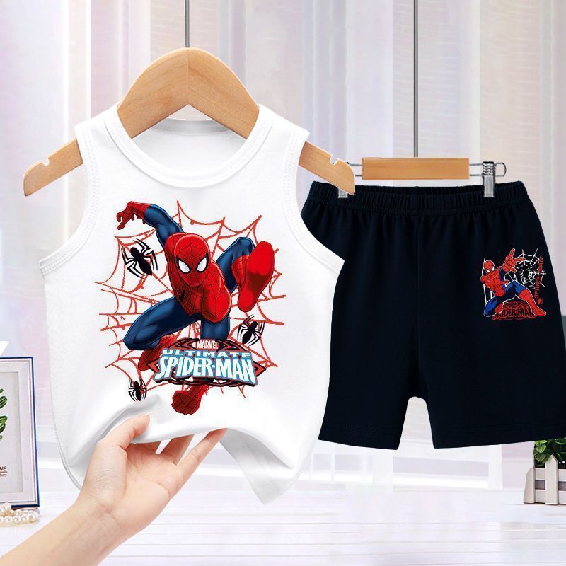 아동복 스파이더 맨 조끼 정장 여름 얇은 아동 조끼 아동 겉옷 외국 스타일 조끼 반바지 투피스 세트스토어 가기