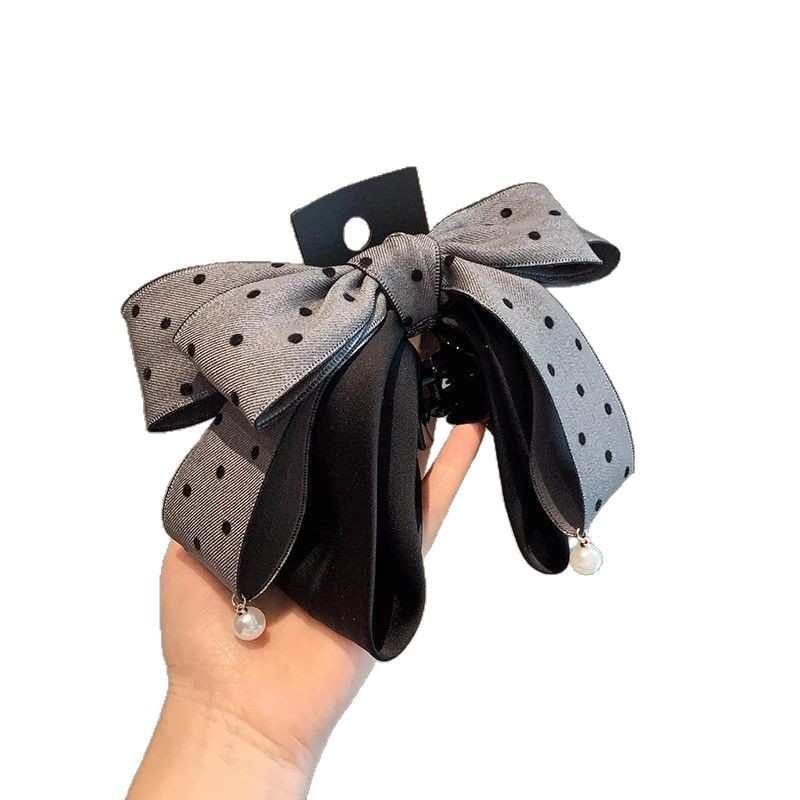 새로운 한국 스타일 그레이 폴로 도트 보우 헤어핀 하이 느낌 우아한 포니 테일이 헤어 액세서리 헤어 쇼급 헤어핀 헤드웨어스토어 가기