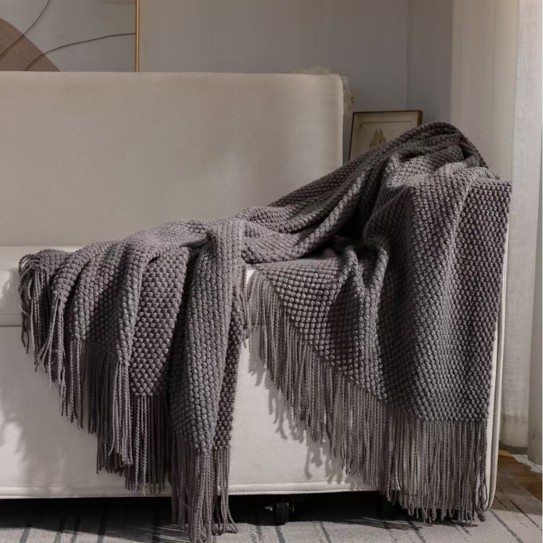 북유럽 솔리드 컬러 클래스 A 술 담요 스레드 담요 소파 담요 사무실 낮잠 담요 에어컨 담요 끝 수건 니트 담요