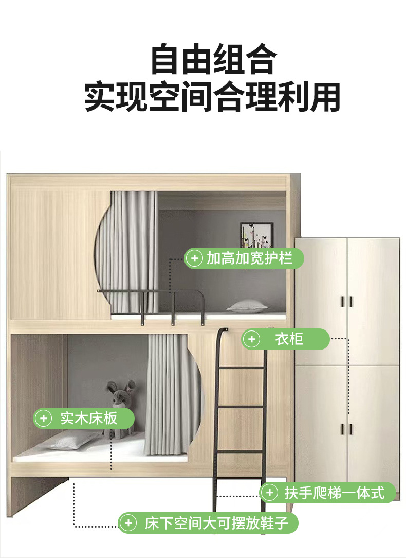 초승달 공간 캡슐 침대 낮은 침대 학교 간단한 2 층 청소년 호스텔 아파트 침대 모든 것을 포함하는 침대 제조 업체