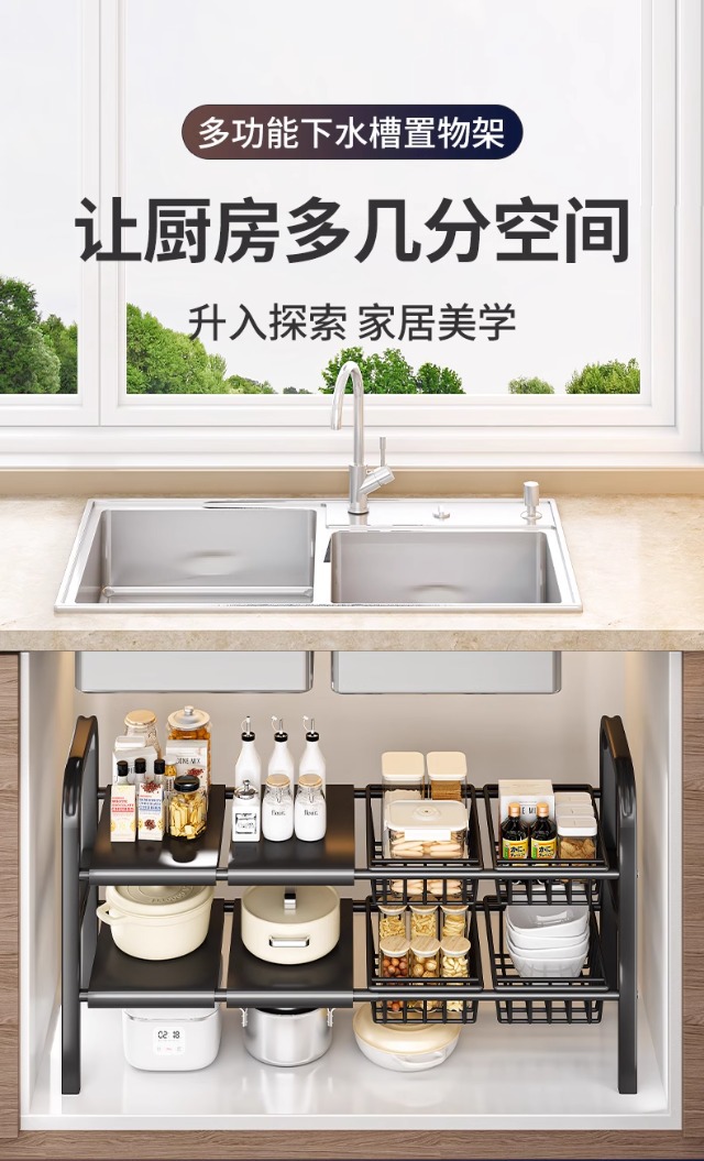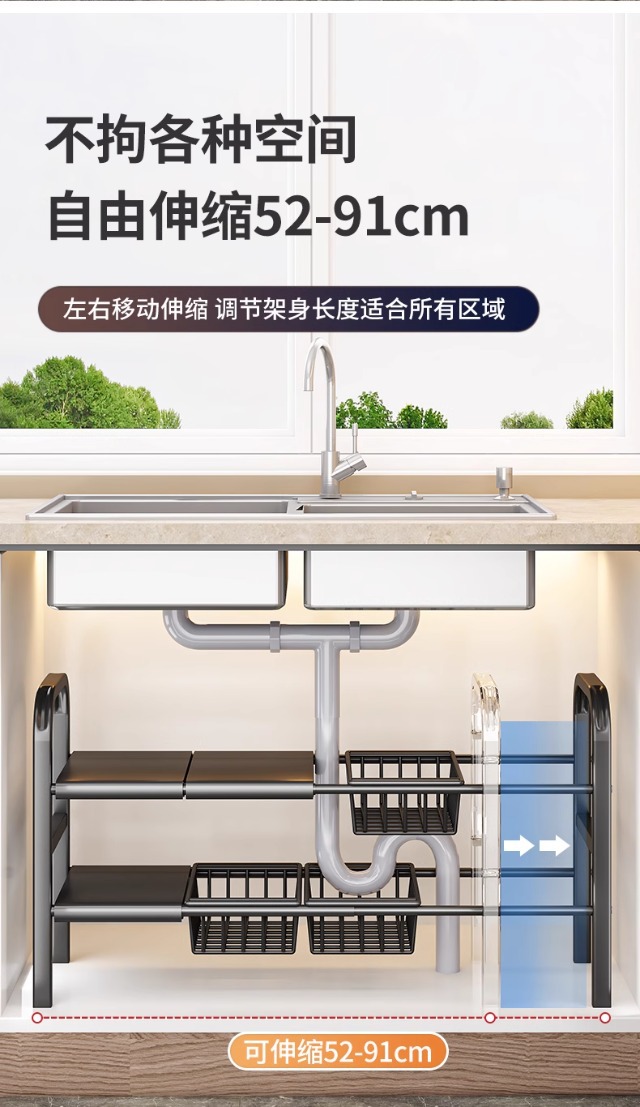욕실 싱크 랙 추출 가능한 가정용 바닥 싱크 저장 랙