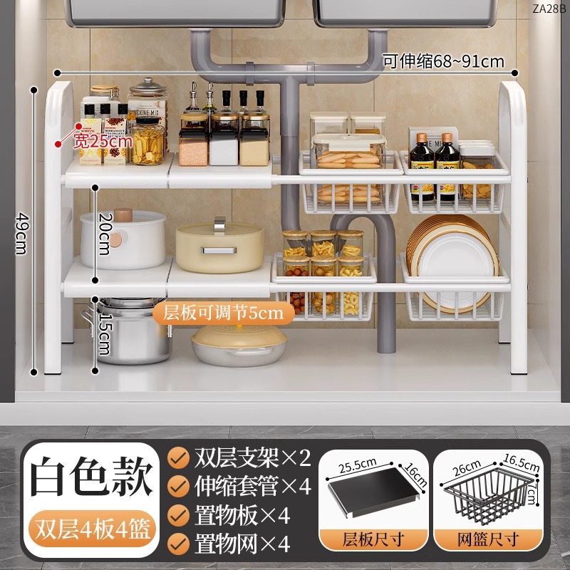 • [화이트 더블 레이어 수납식] 보드 4개와 메쉬 바구니 4개가 무료로 제공됩니다.