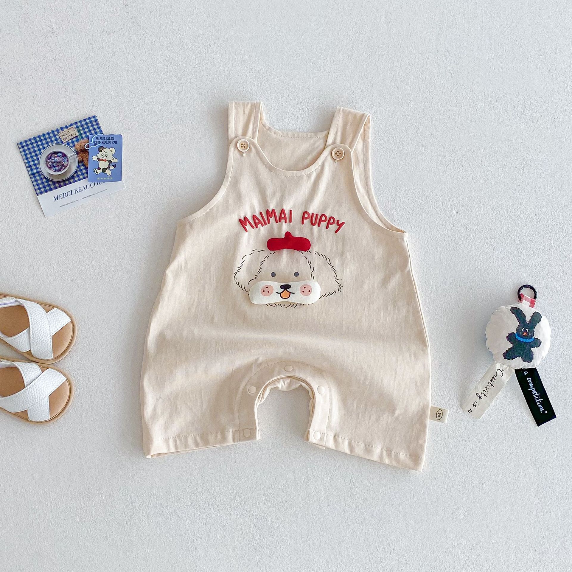 아기 만화 점프 수트 2025 새로운 여름 아기 서양 스타일 강아지 가방 방귀 옷 조수 신생아 옷스토어 가기